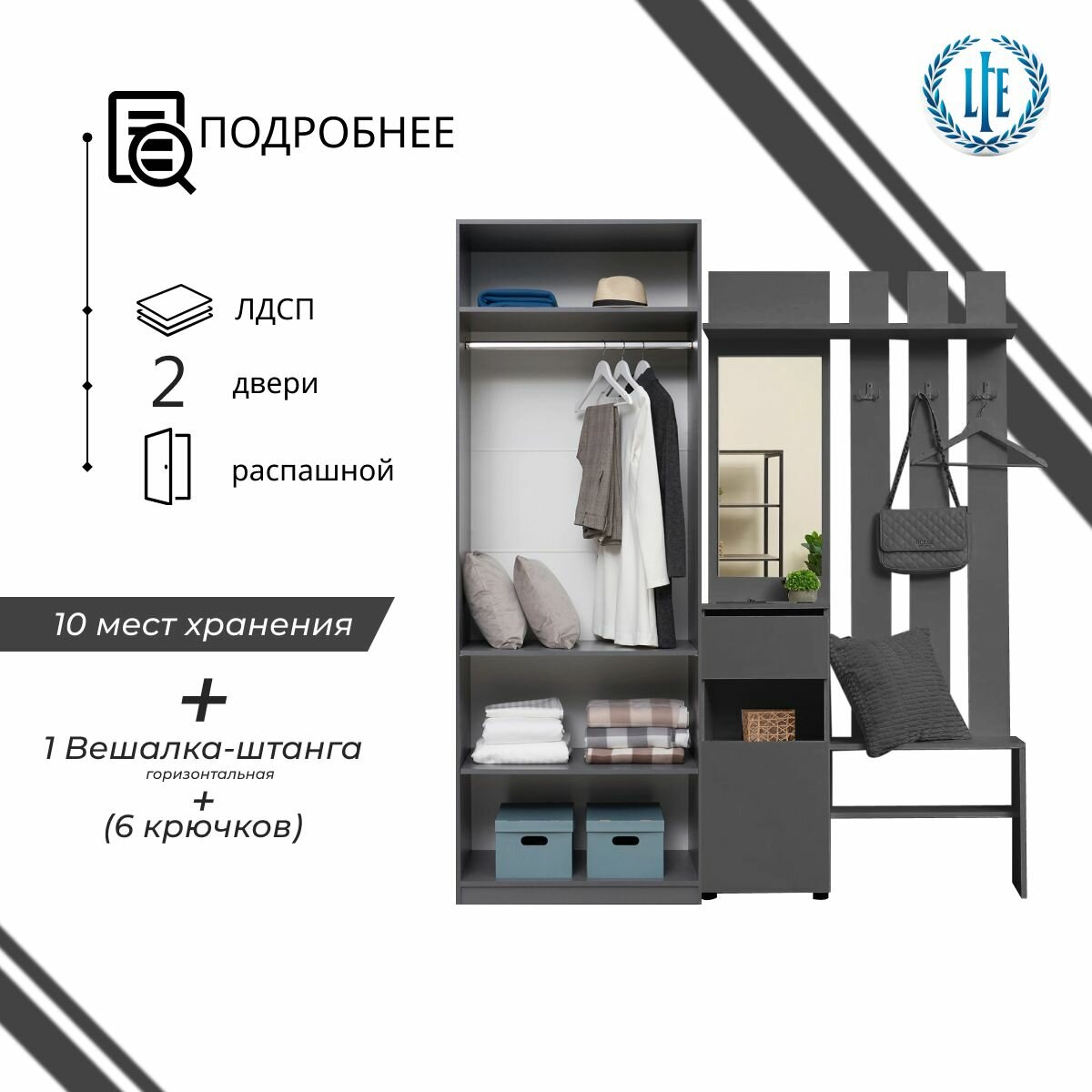 Модульная прихожая Лувр графит серый, 180.2х50.6х221.6 см