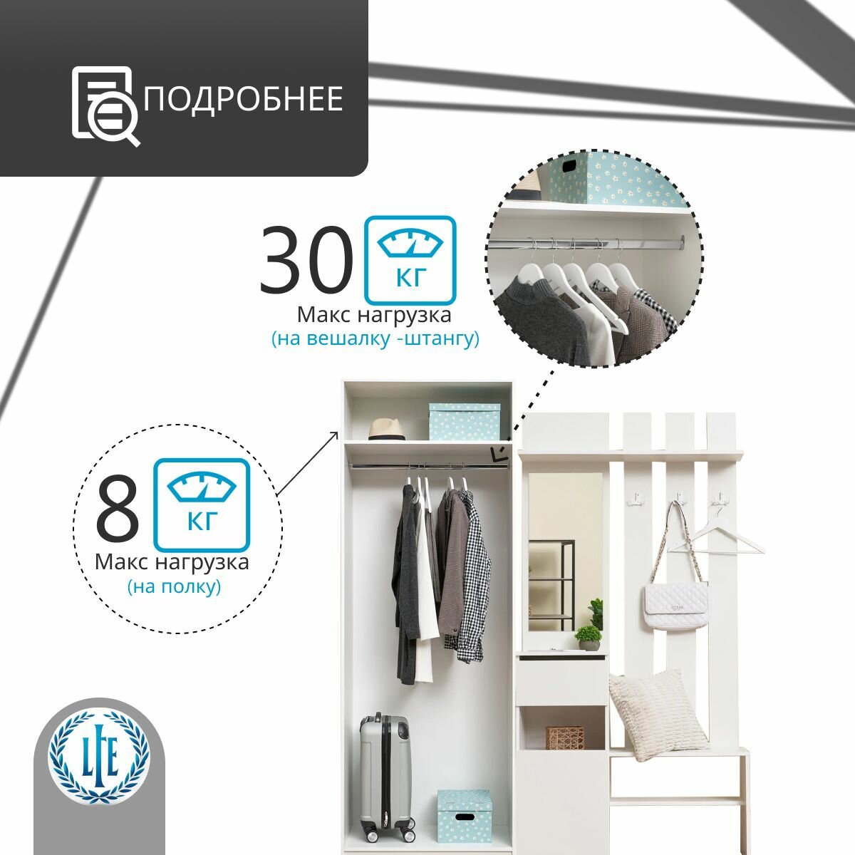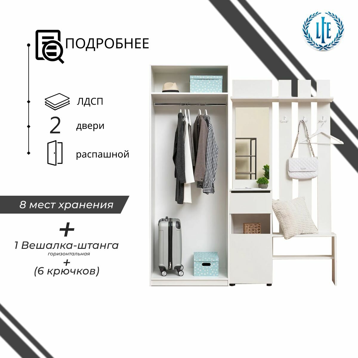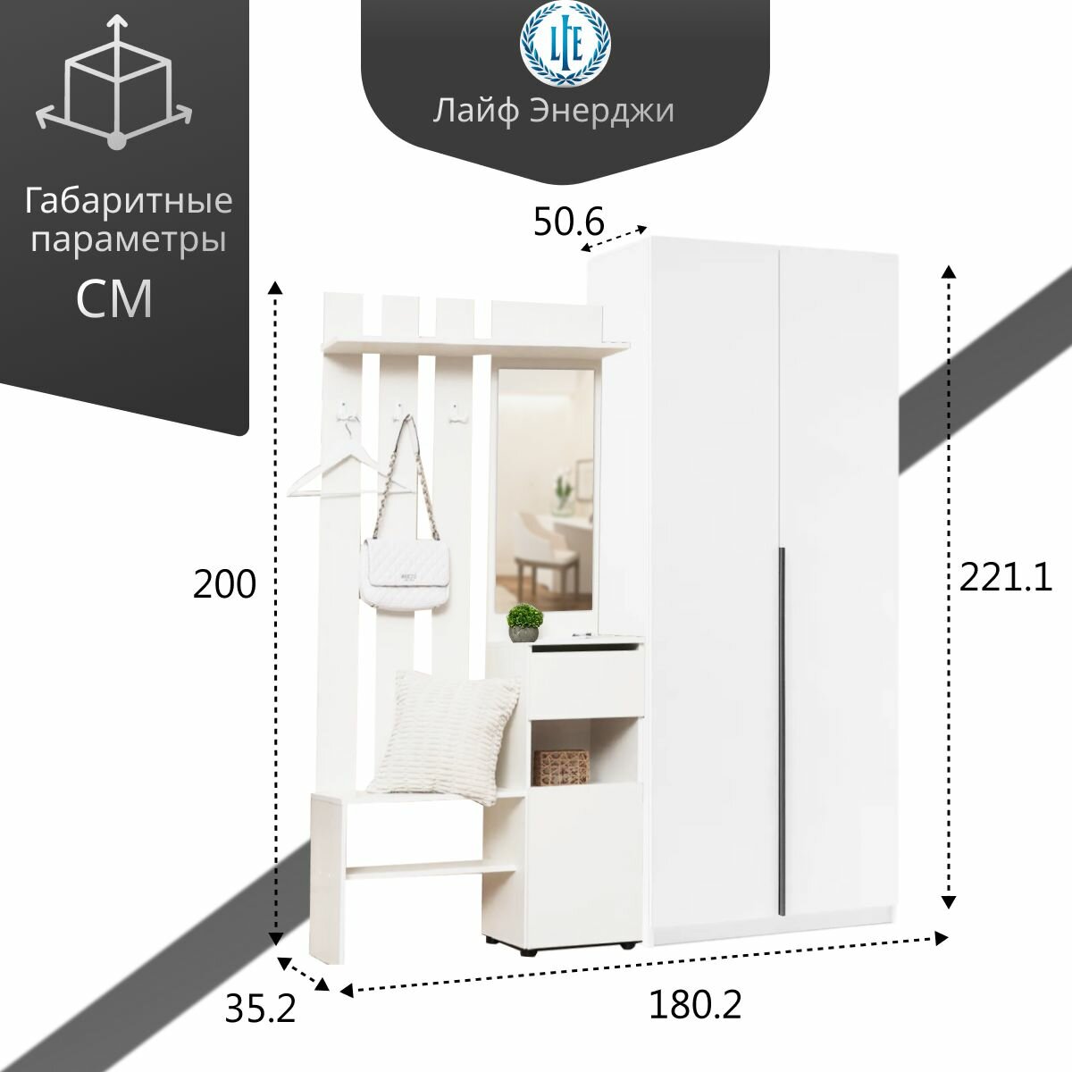 Модульная прихожая Лувр белый текстурный, с 2-мя выдвижными ящиками и 3-мя полками, 180.2х50.6х221.6 см