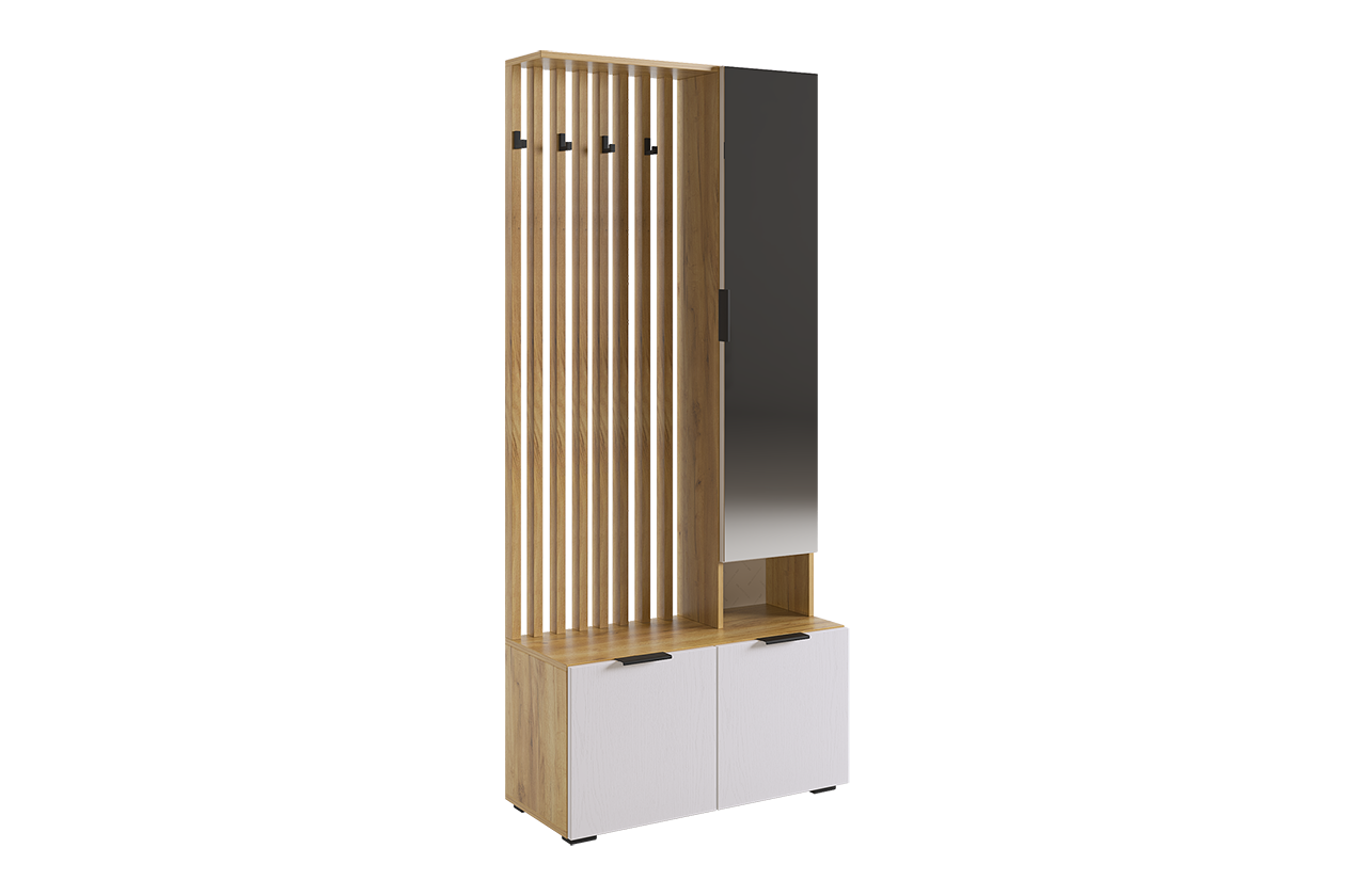 Модульная прихожая "Бери К3", дуб крафт золотой/белое дерево, 160х35х182,6 см, Mebelson