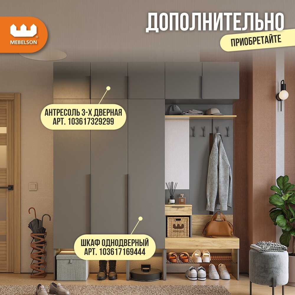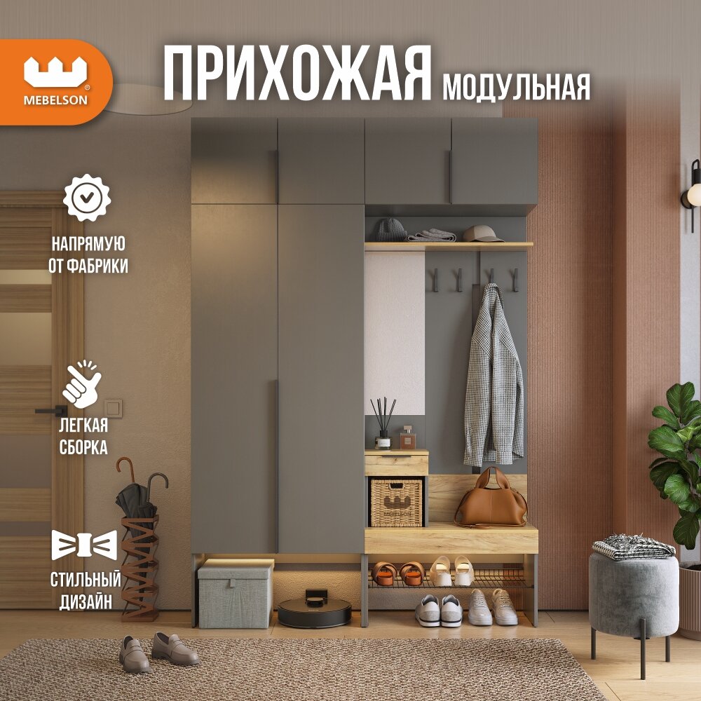 Модульная прихожая "Баско" К5, цвет Графит/дуб крафт золотой, 160*35*235 см, Mebelson интересное: