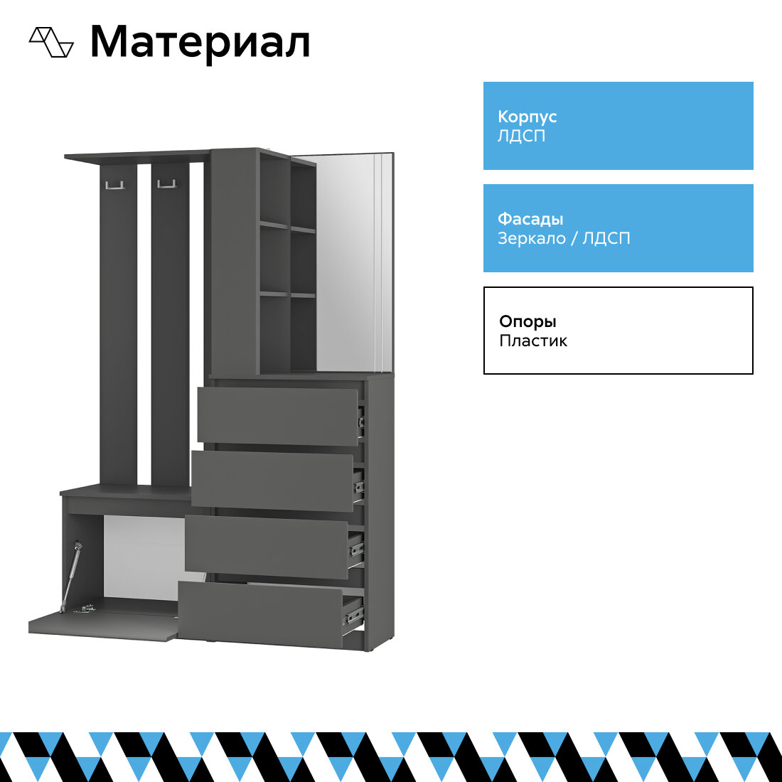 Прихожая с зеркалом Нонтон Симпл, графит, 120.3x37.6x180.6 см интересное: