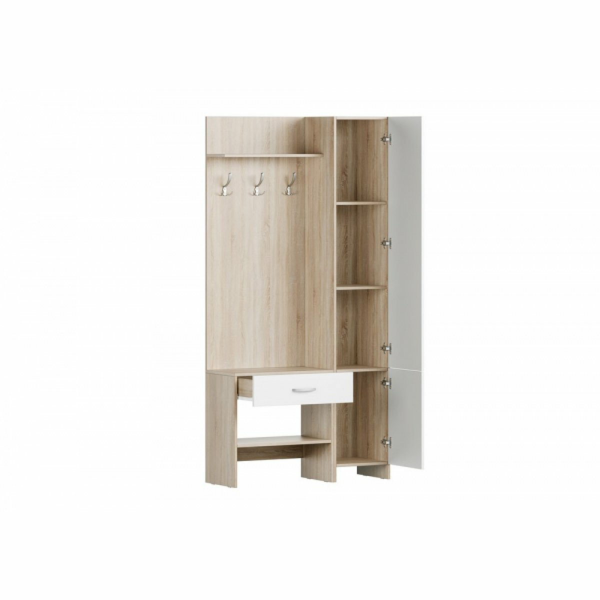 Комплект прихожей "Домино-2У", с зеркалом, с ящиками, с полками, 95х34,9х195 см Дуб сонома светлый / белый гладкий интересное: