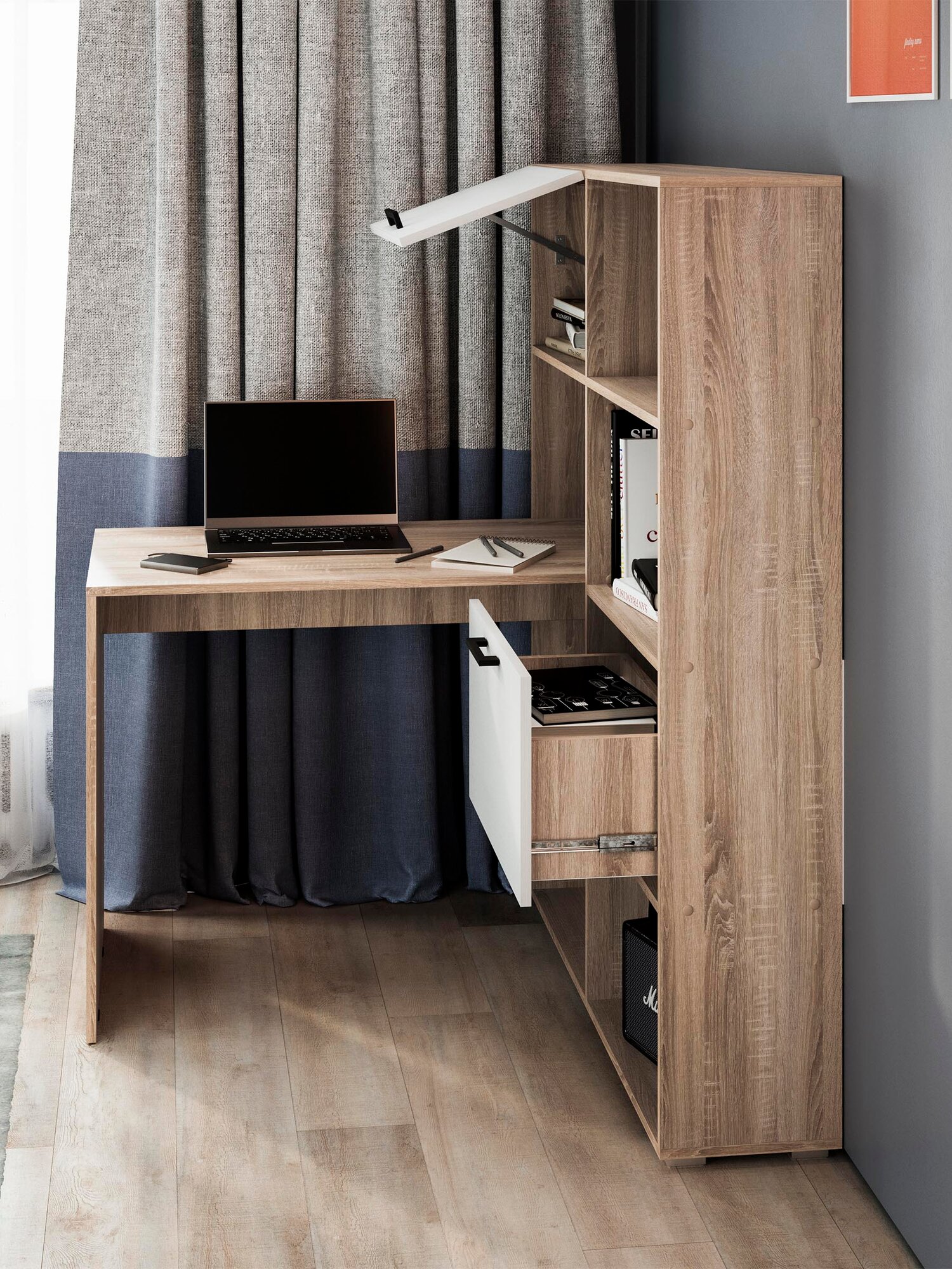 Стол письменный FRENT Куба, ЛДСП, дуб сонома/графит серый, с ящиками, 110x55x143 см