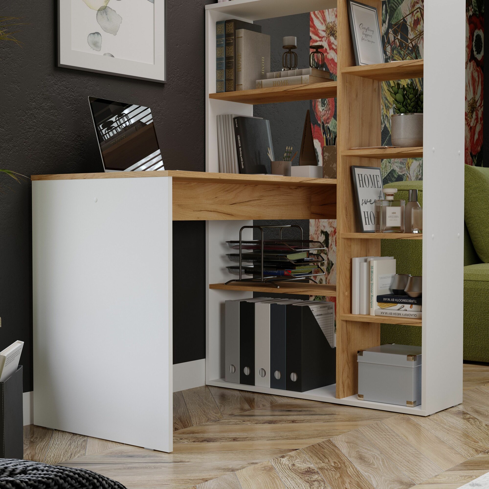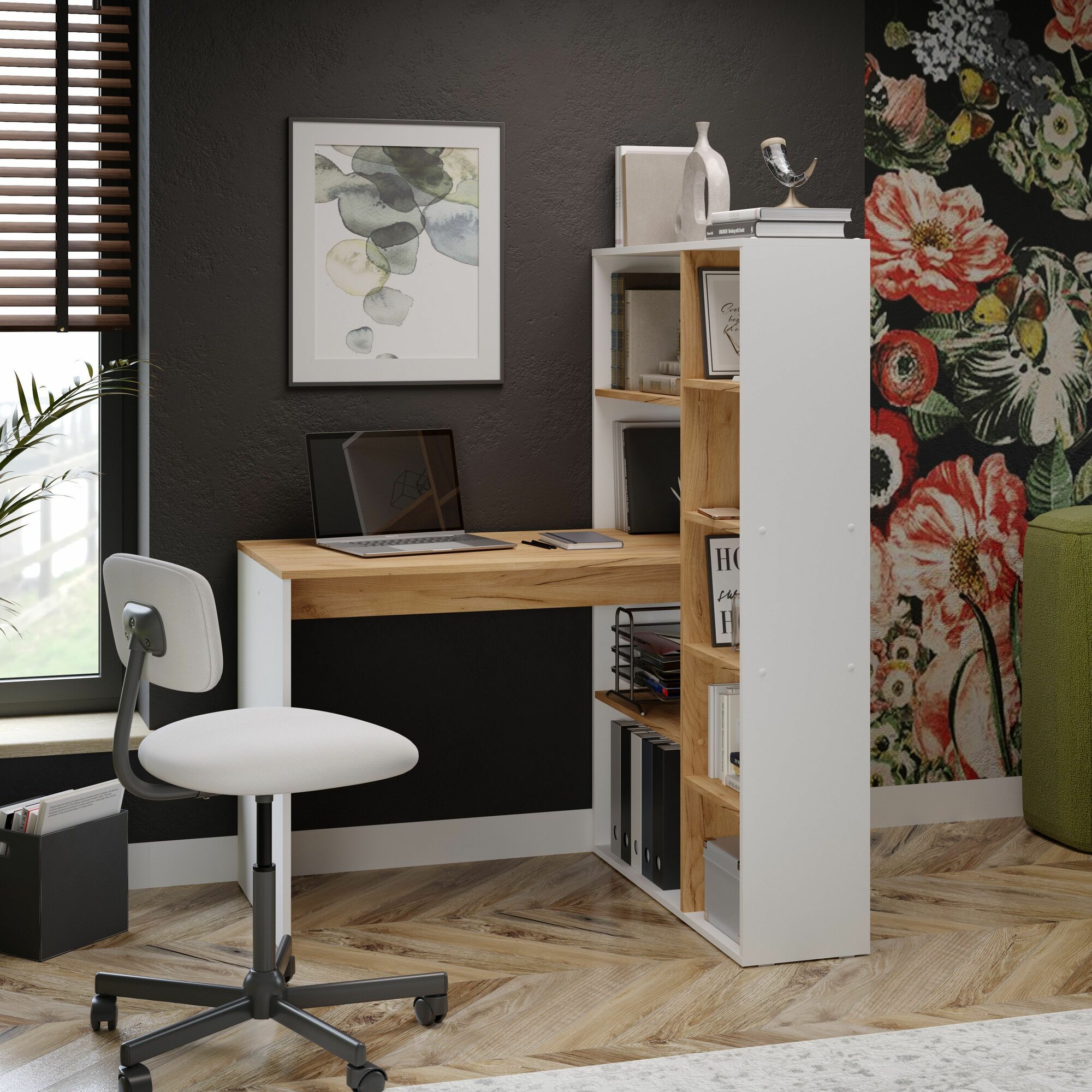 Стол письменный с полками тип 16 Белый Ясень/Дуб Крафт Золотой интересное: