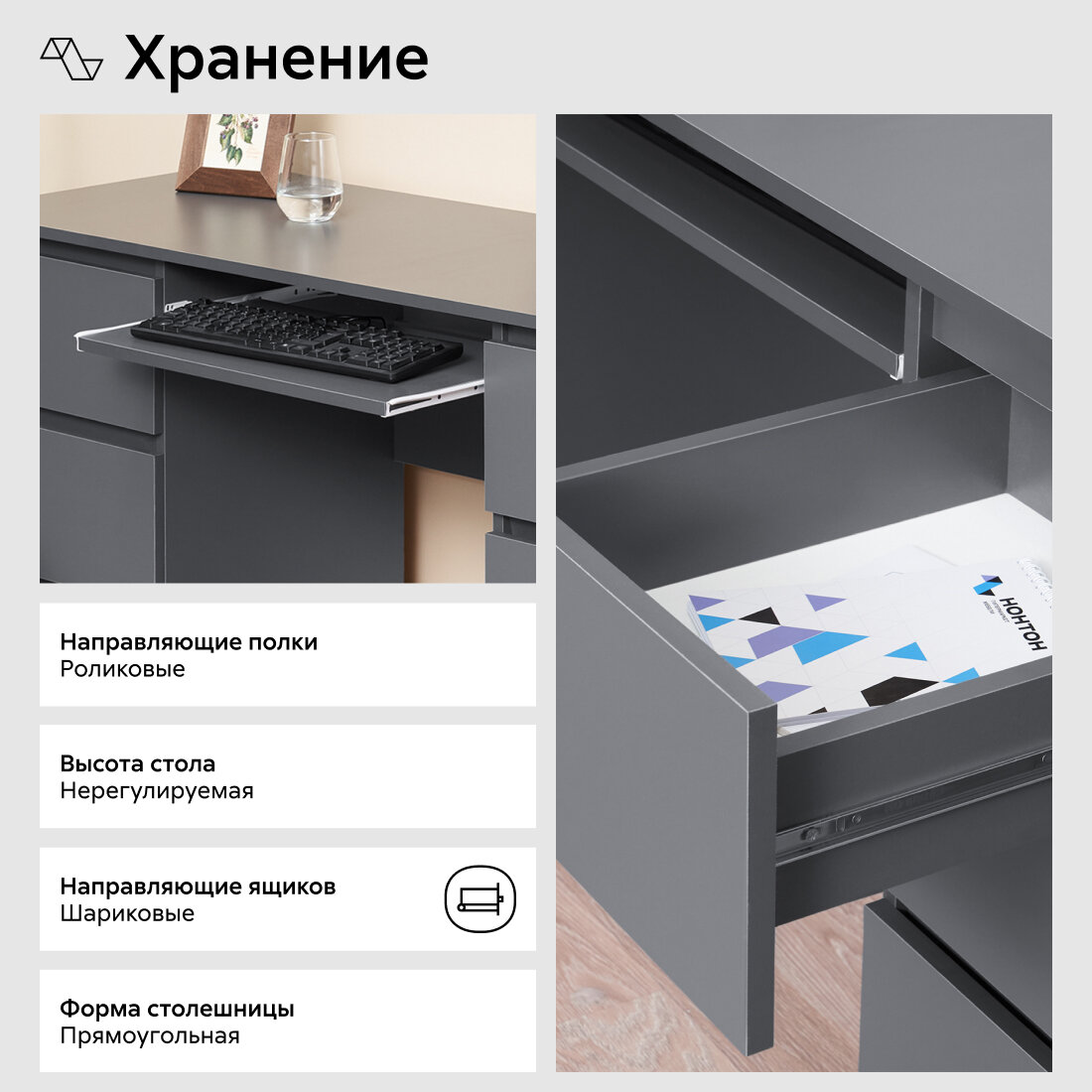 СохранитьСтол письменный с ящиками Нонтон Челси, графит, 138.6x49x76.8 см интересное: