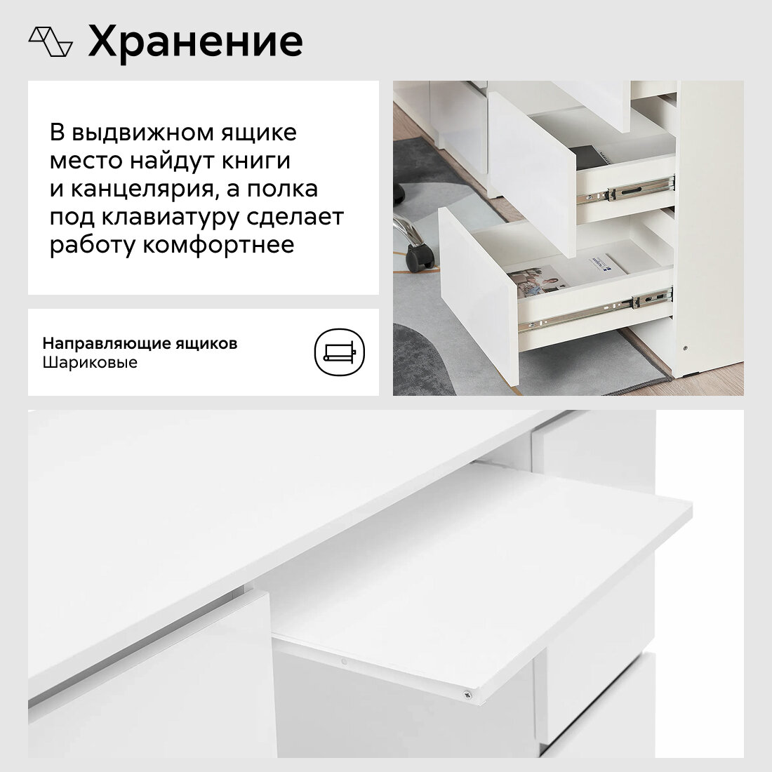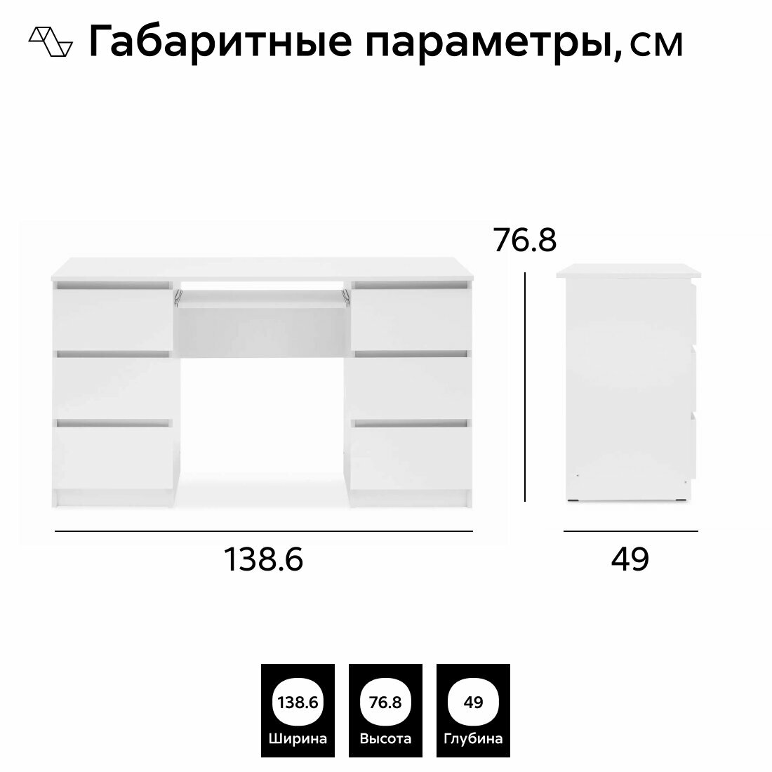 СохранитьСтол письменный с ящиками Нонтон Челси, белый глянец / белый, 138.6x49x76.8 см интересное: