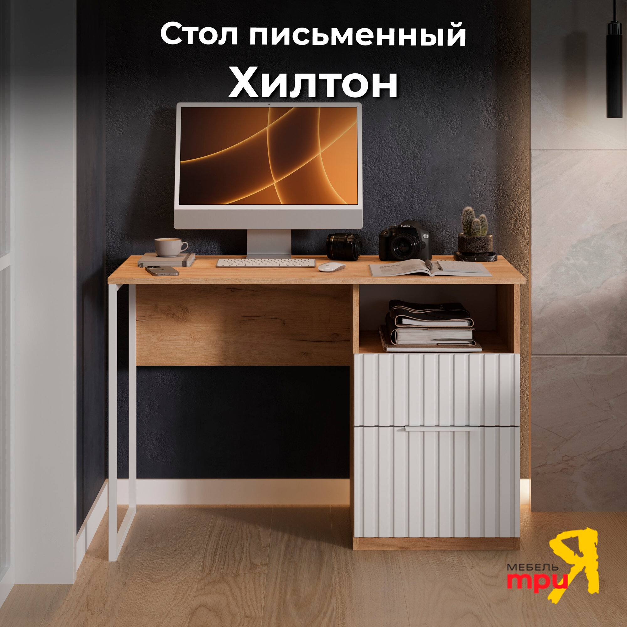 Письменный стол , компьютерный с ящиками и полкой Хилтон ( Дуб Крафт Золотой/Белый матовый) интересное: