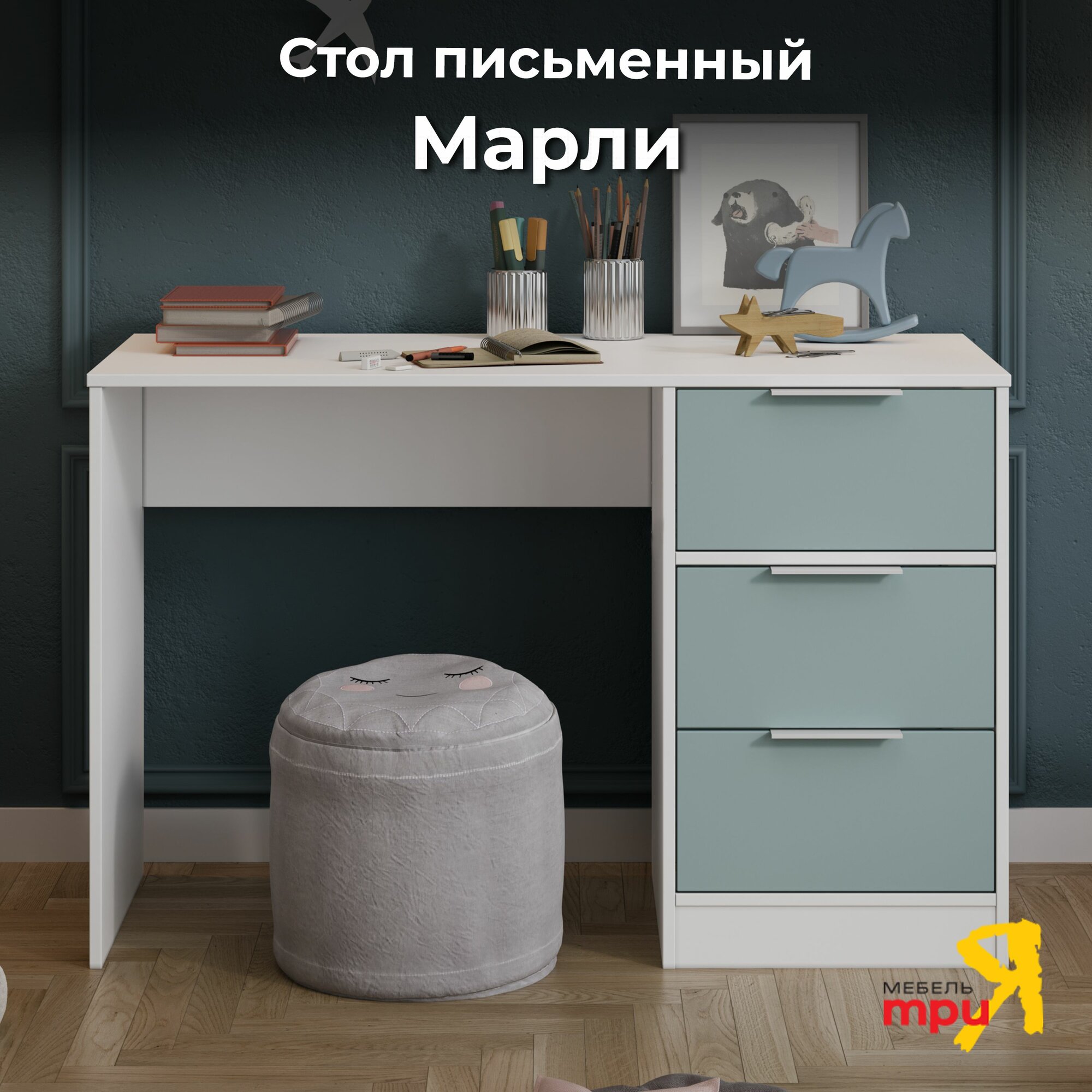 Стол письменный , компьютерный "Марли" (Белый/Серо-голубой) интересное:
