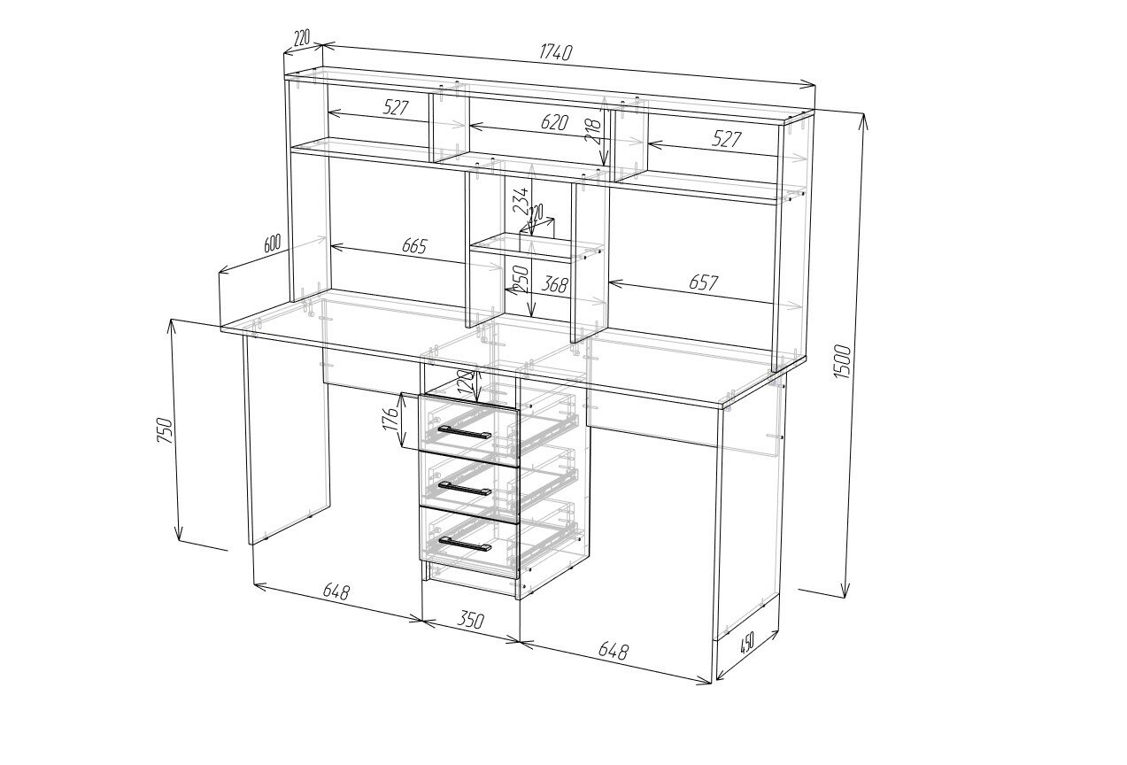 Стол компьютерный МК"Пирамида" СК-58 с надстройкой, двухместный, 3 ящика, цвет белый, 150х1740х60 см интересное: