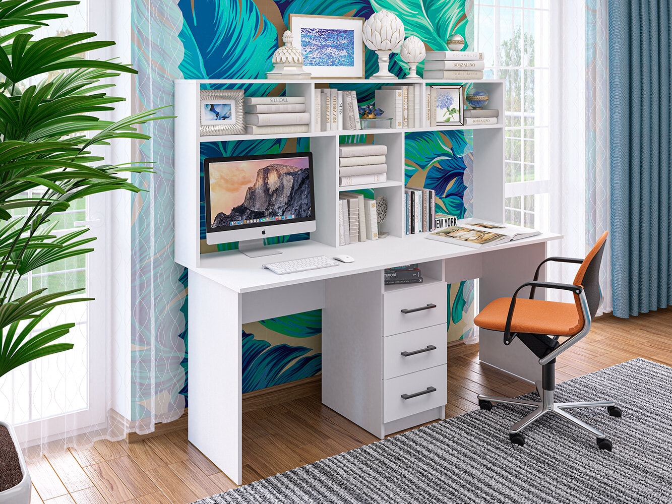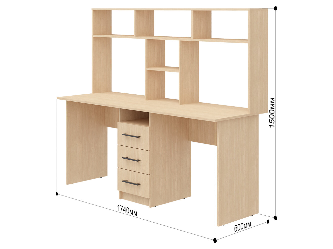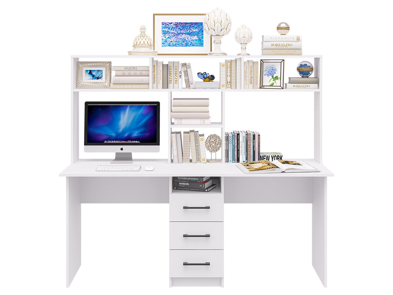 Купить Стол компьютерный МК"Пирамида" СК-58 с надстройкой, двухместный, 3 ящика, цвет белый, 150х1740х60 см