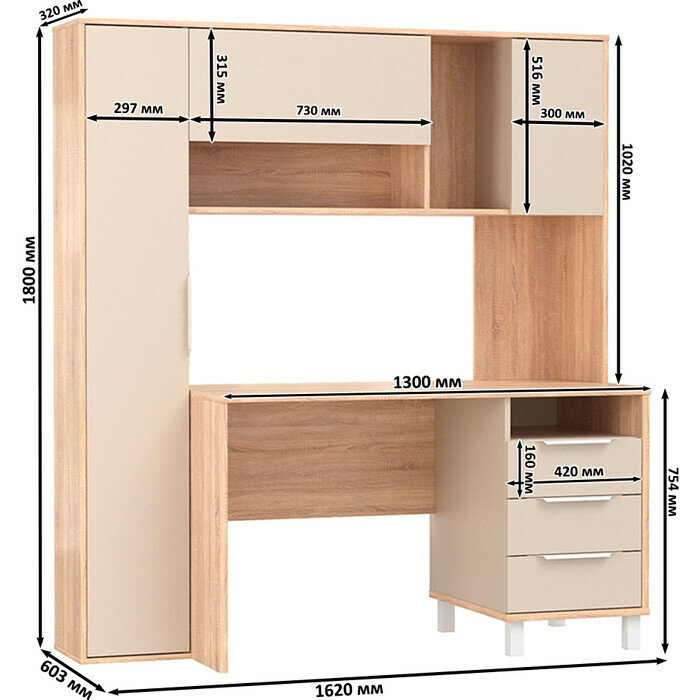 Стол компьютерный 12.95N цвет дуб сонома/сатин, ШхГхВ 162х60,3х180 см, НЕ универсальная сборка интересное: