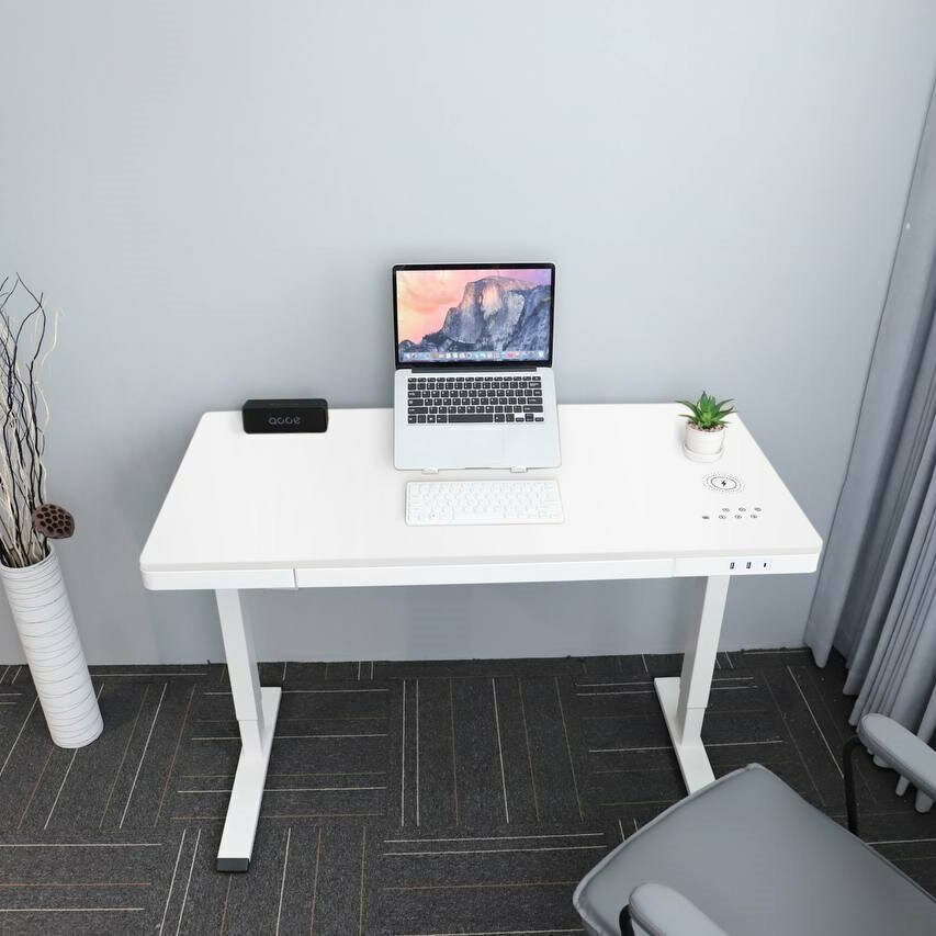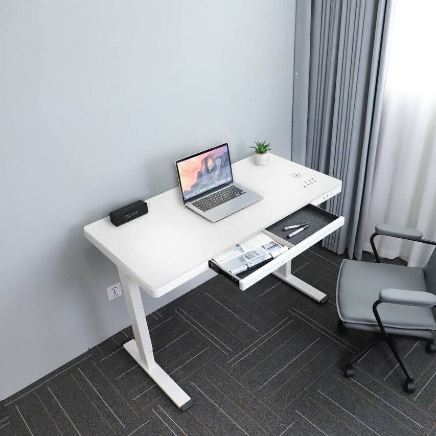 Стол регулируемый по высоте с ящиком для хранения LevelDesk WW1S, столешница из каленого стекла 100х60 см