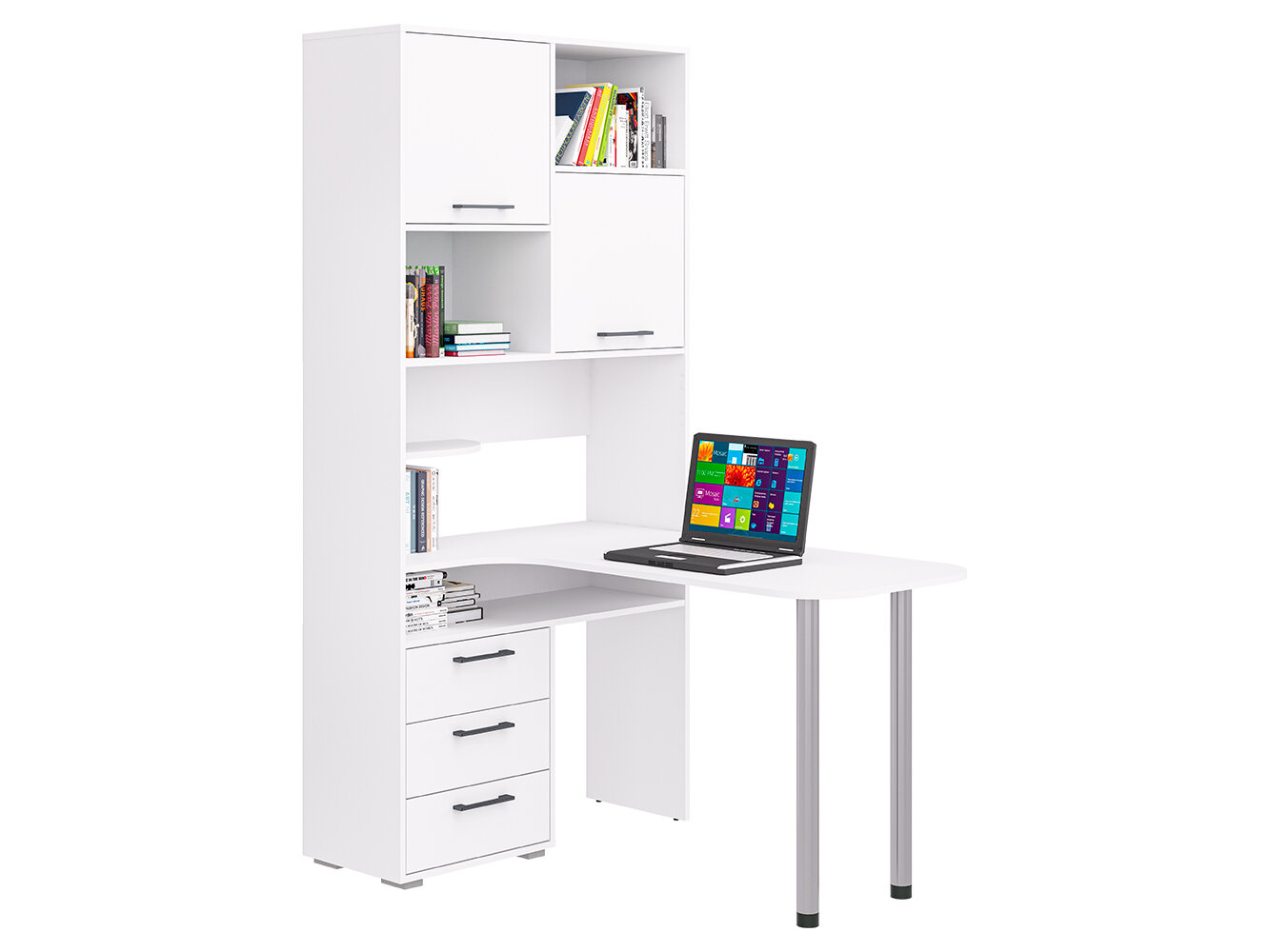 Купить Стол компьютерный КС-61 угловой с надстройкой, ящиками, белый