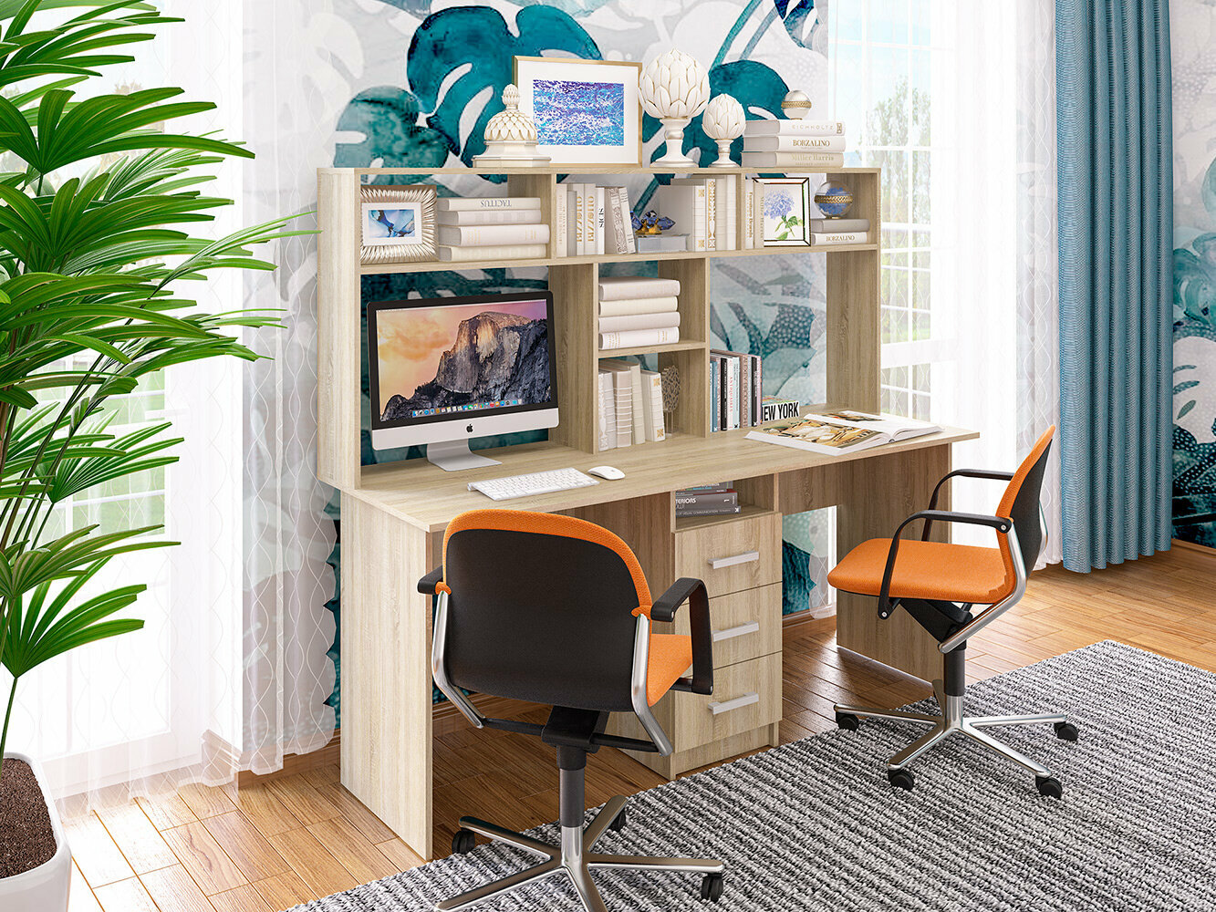 Стол компьютерный МК"Пирамида" СК-58 с надстройкой, двухместный, 3 ящика, цвет сонома, 150х174х60 см интересное: