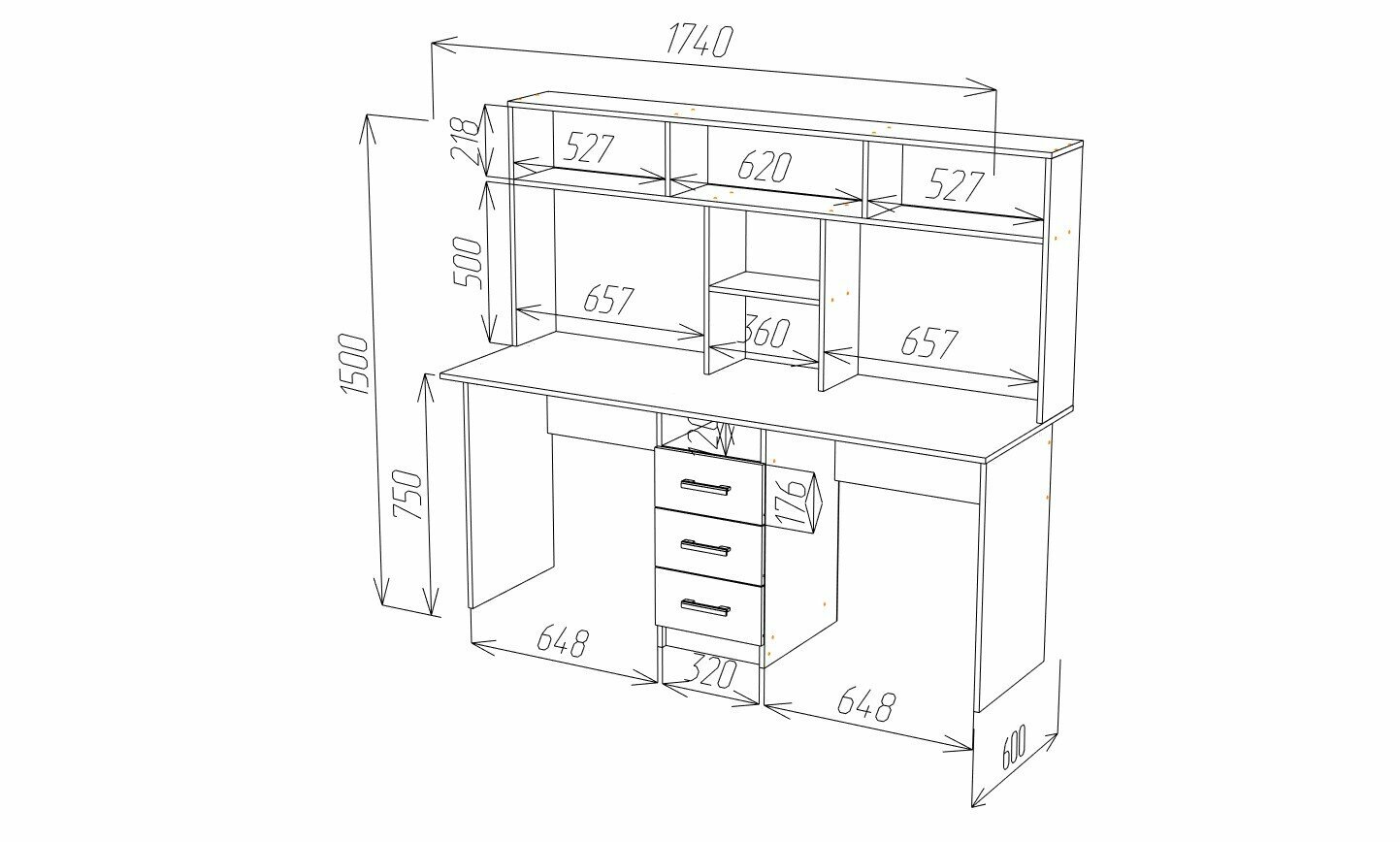 Стол компьютерный МК"Пирамида" СК-58 с надстройкой, двухместный, 3 ящика, цвет сонома, 150х174х60 см