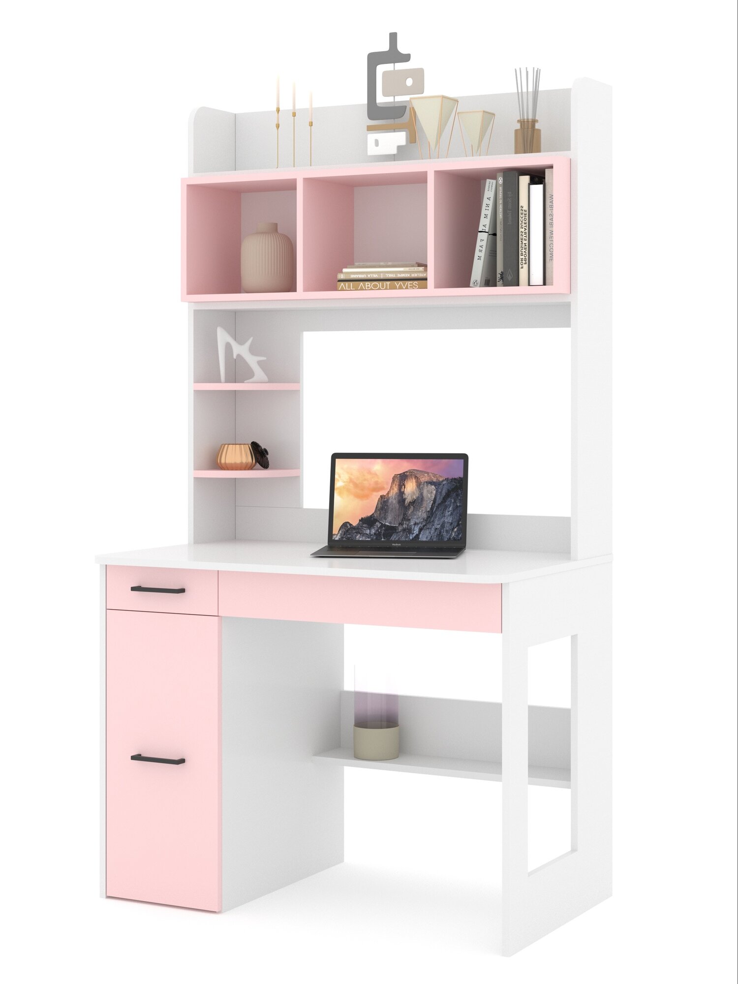 Купить Стол письменный с надстройкой, с полками, с ящиком Есэндвич ART Лаворо 100х180х60 см, левый (Белый/Розовый кварц)