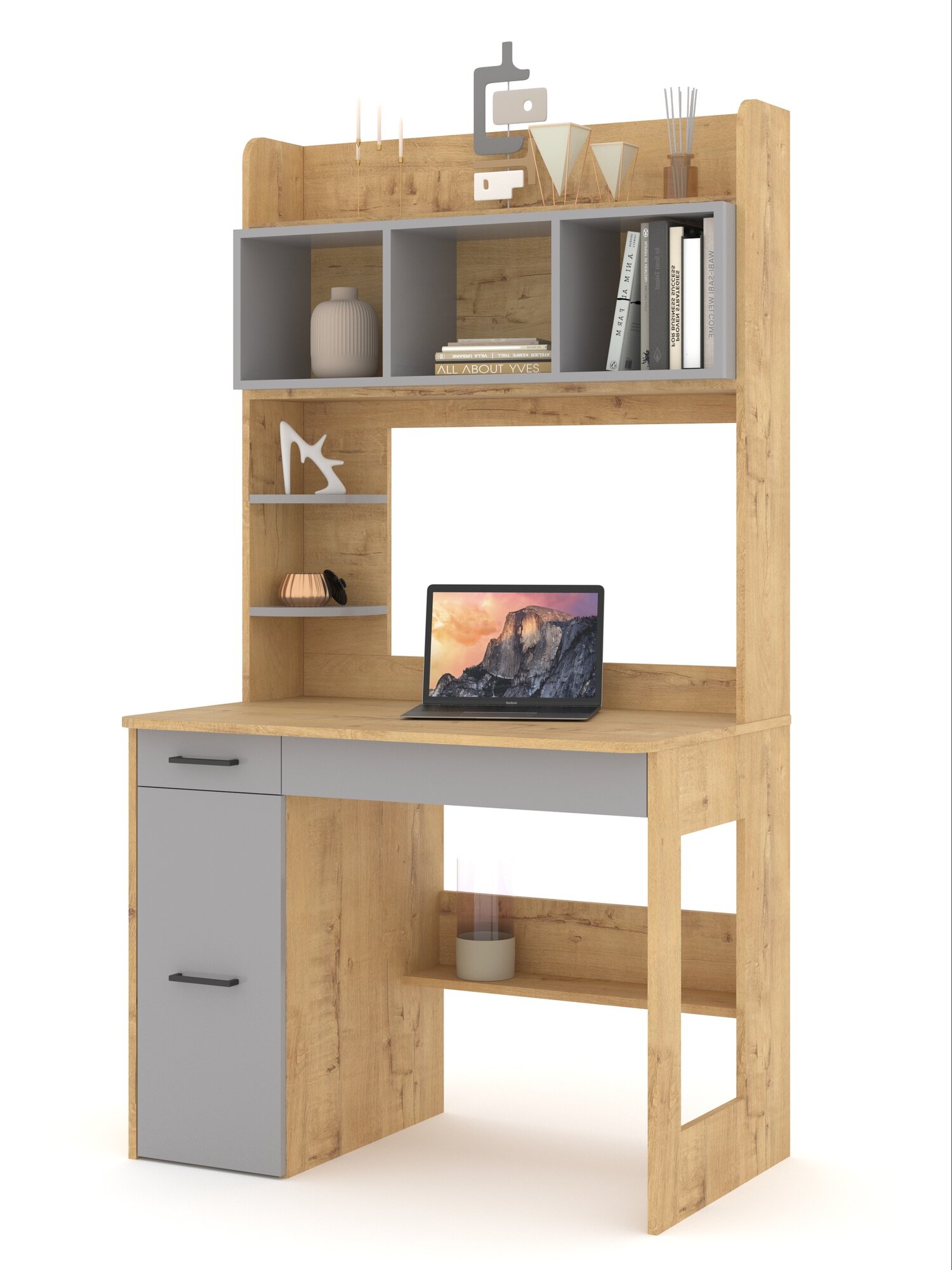 Стол письменный с надстройкой, с ящиком Есэндвич ART Лаворо 100х180х60 см, левый (Анкор светлый/Вулканический серый)
