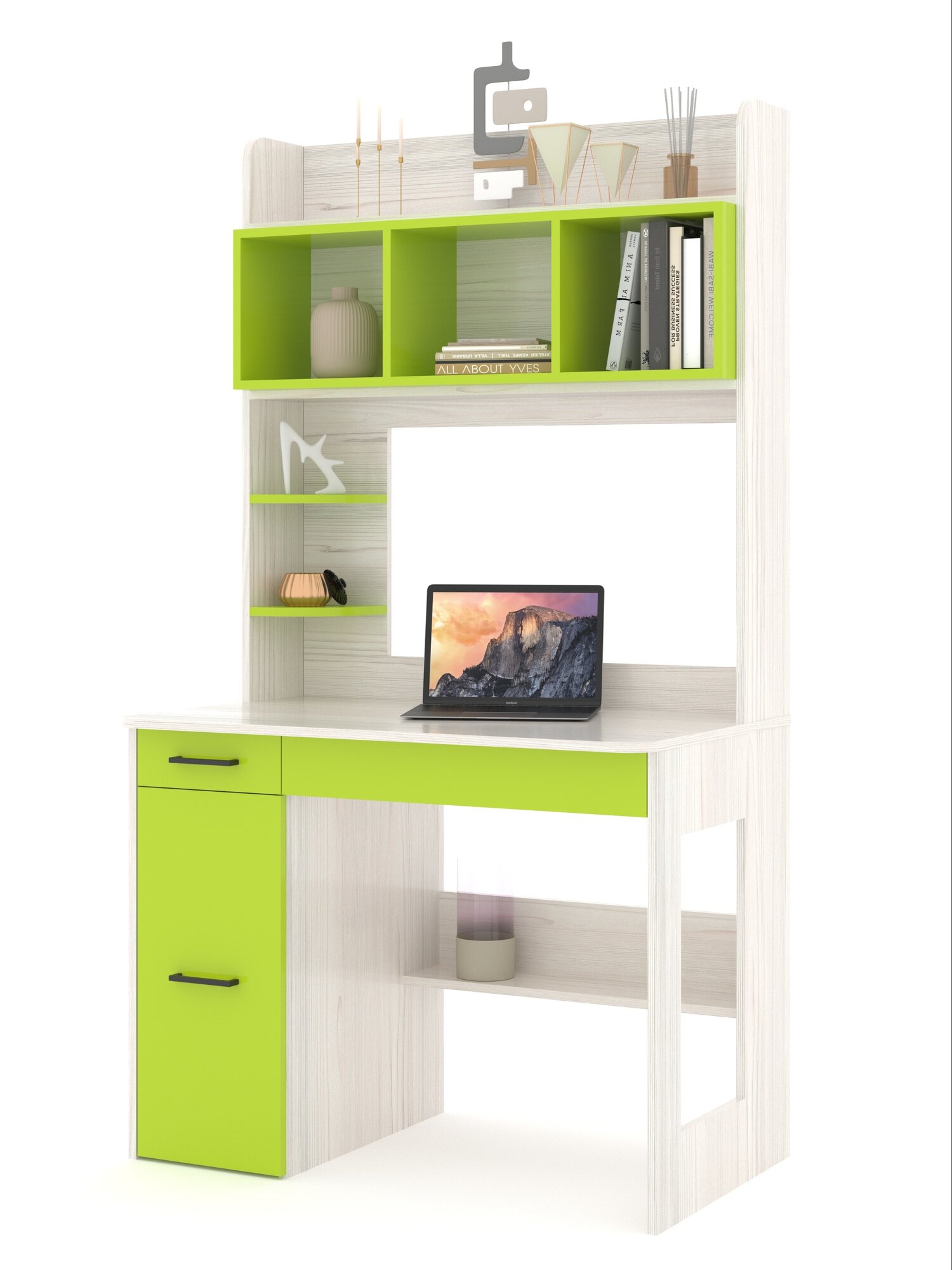 Стол письменный с надстройкой, с полками, с ящиком Есэндвич ART Лаворо 100х180х60 см, правый (Сосна астрид/Лайм)