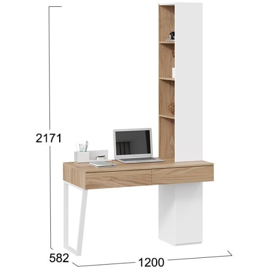 Купить Стол письменный Трия Порто СМ-393.15.012 со шкафом комбинированным (настольным) Белый жемчуг/Яблоня беллуно/Белый софт