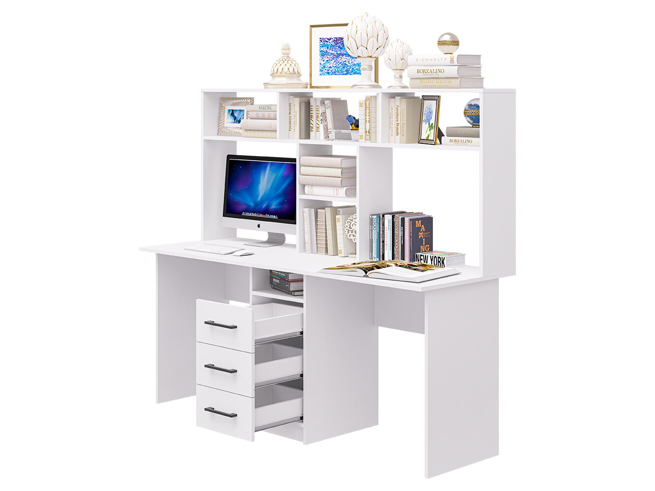 Стол компьютерный с надстройкой для двоих КС-58 Белый, 1500х1700х600 Пирамида интересное: