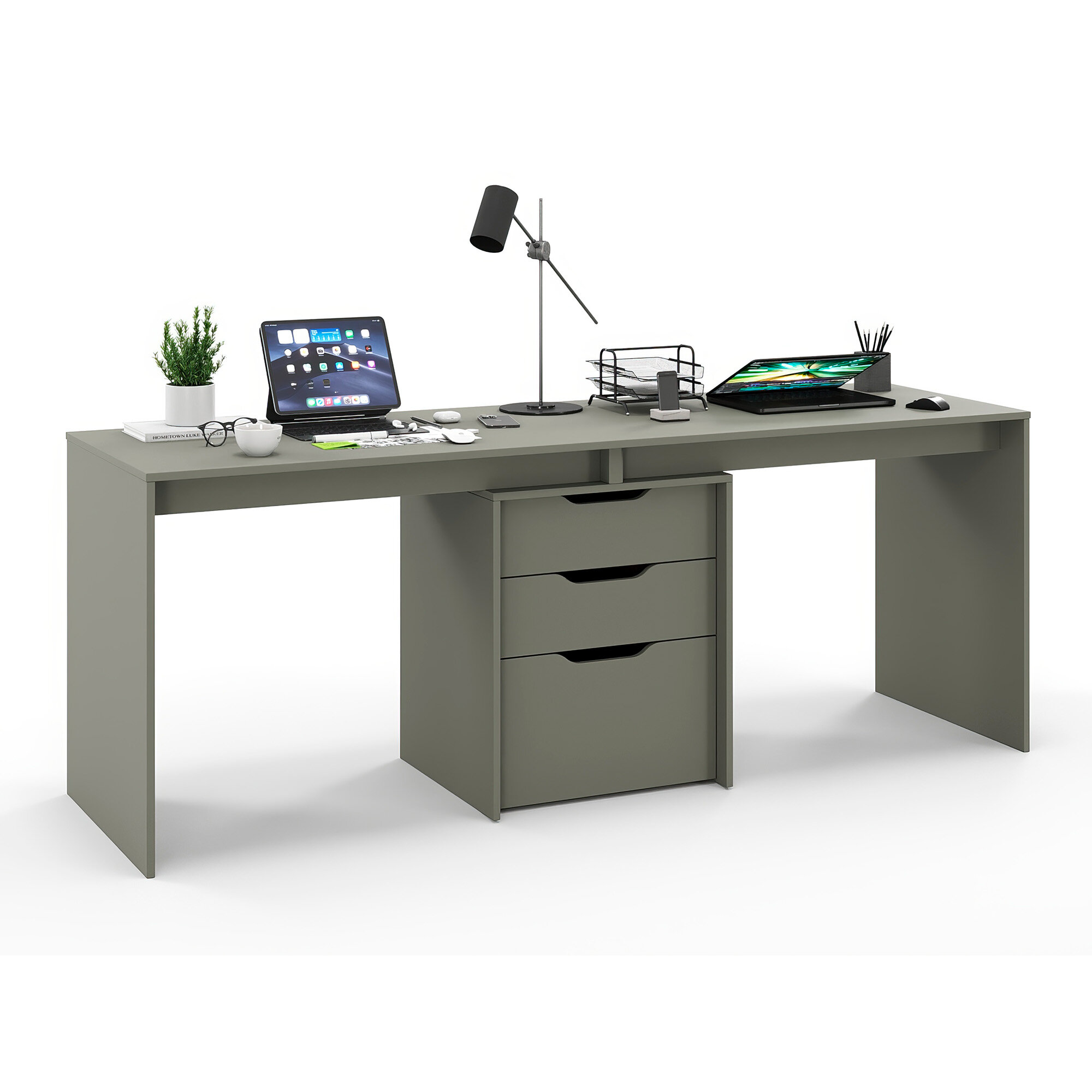Компьютерный стол двойной, с тумбой, с ящиками Double Grand Лаворо 220х60х75 см (Хаки)