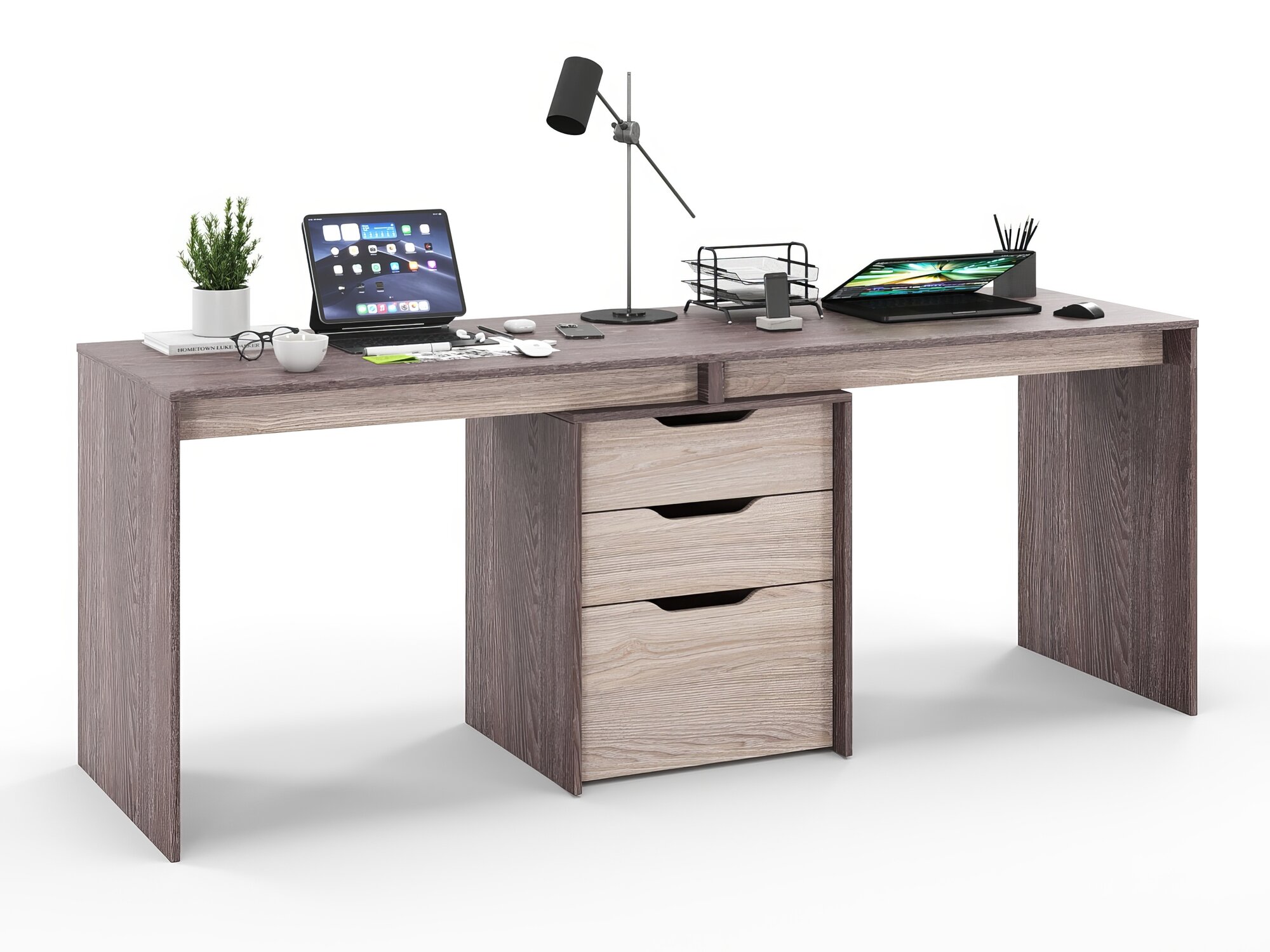 Письменный стол двойной, с тумбой, с ящиками Double Grand Лаворо 220х60х75 см (Дуб бунратти/Вулканический серый)