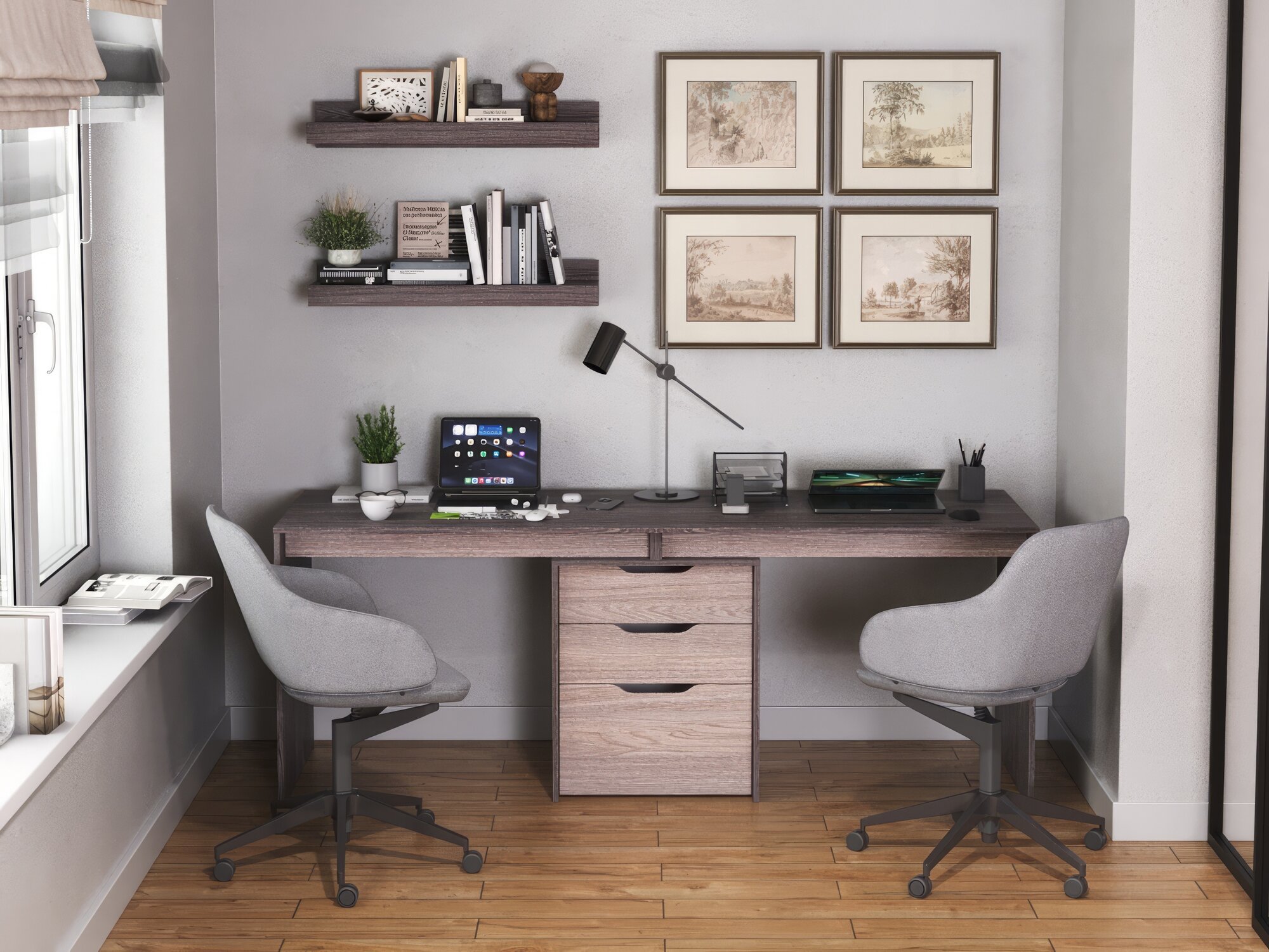 Письменный стол для двоих, двойной, с тумбой, с ящиками Grand Лаворо 180х60х75 см (Дуб бунратти/Вулканический серый)