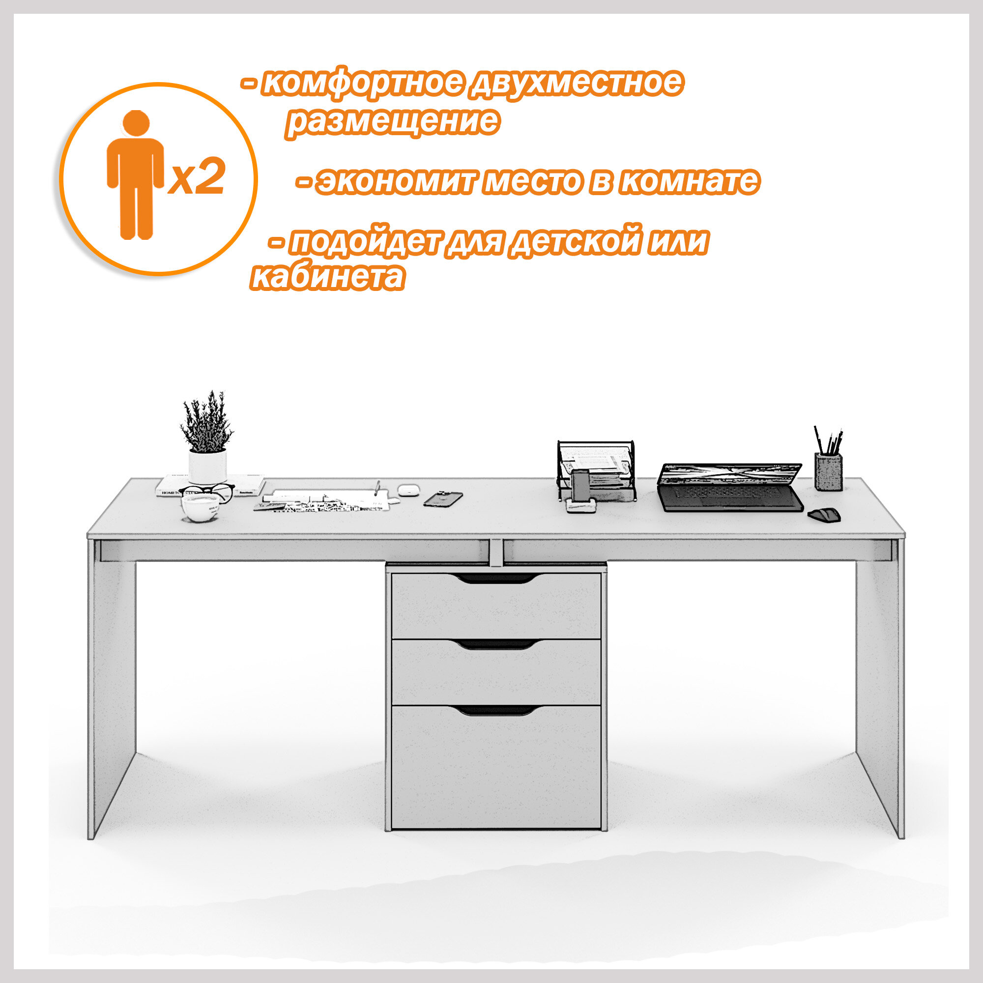 Компьютерный стол для двоих, двойной, с тумбой, с ящиками Grand Лаворо 180х75х50 см (Анкор белый)