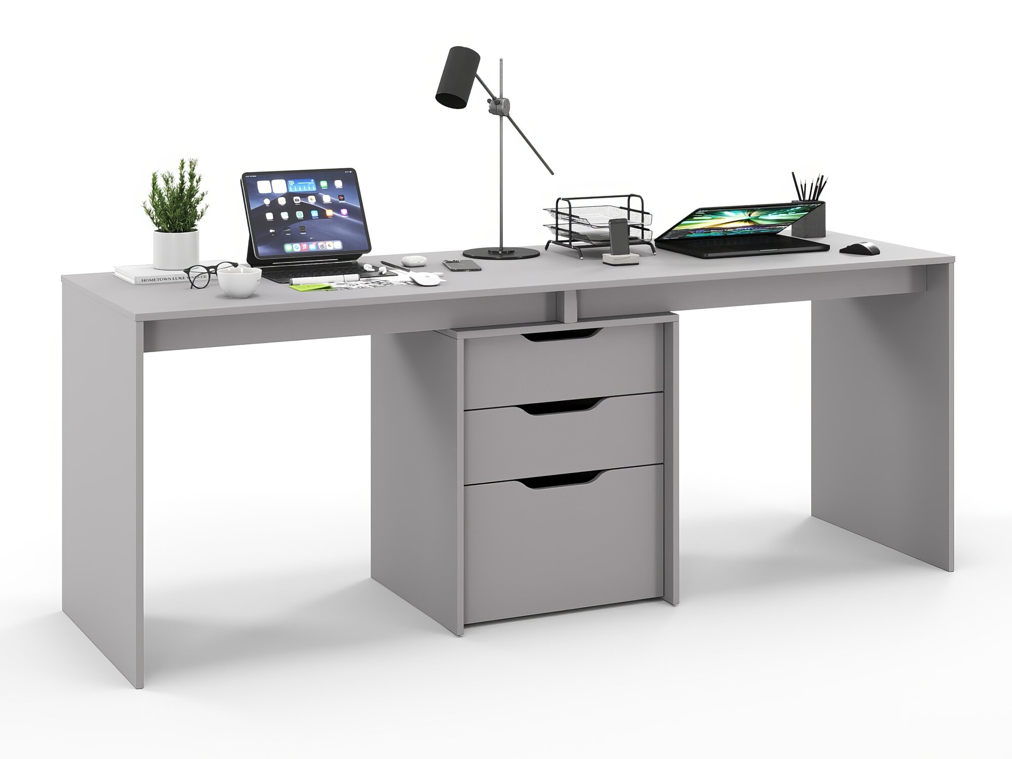 Компьютерный стол двойной, с тумбой, с ящиками Double Grand Лаворо 220х60х75 см (Анкор белый/Базальт)