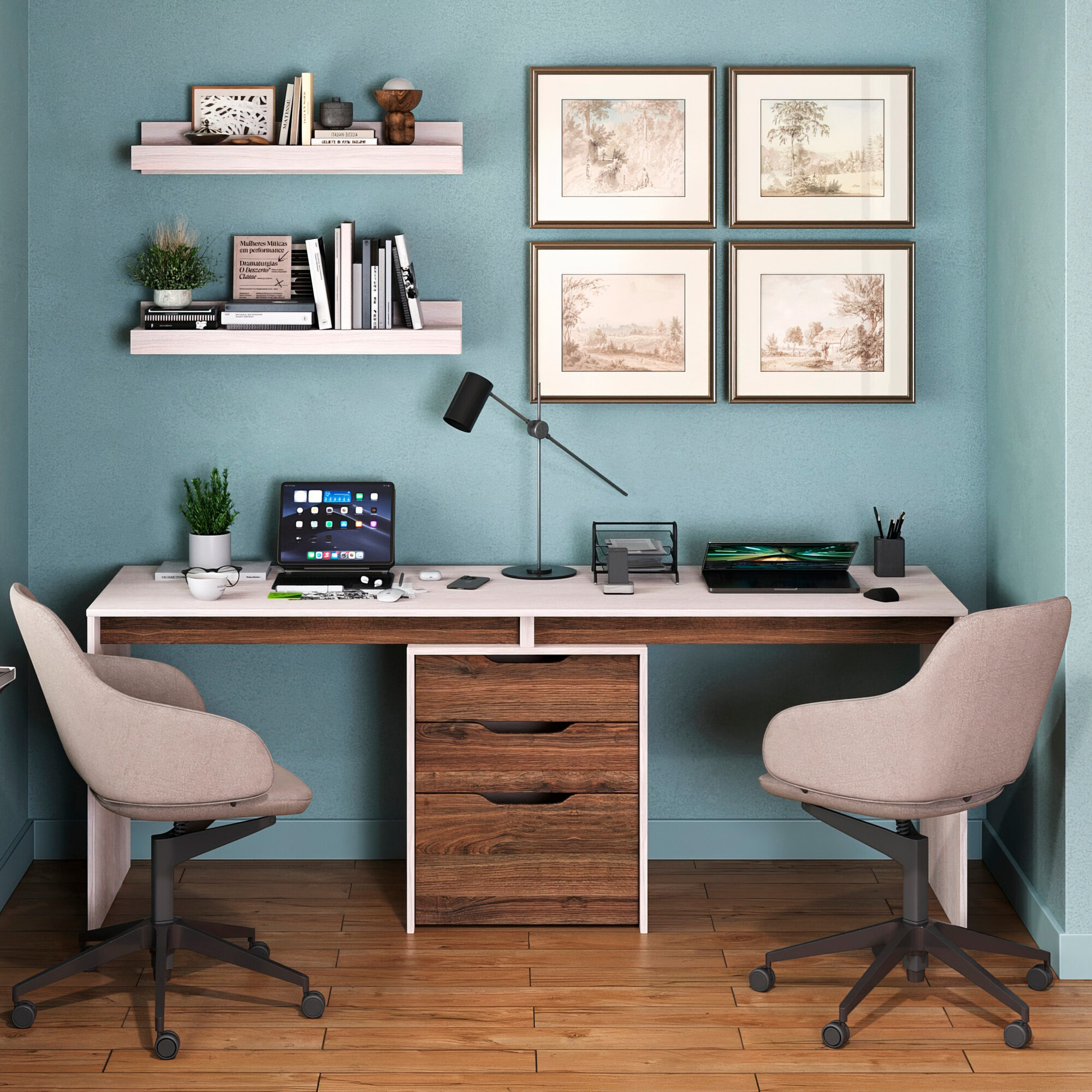 СохранитьКомпьютерный стол для двоих, двойной, с тумбой, с ящиками Grand Лаворо 180х60х75 см (Анкор белый/Дуб Аризона) интересное: