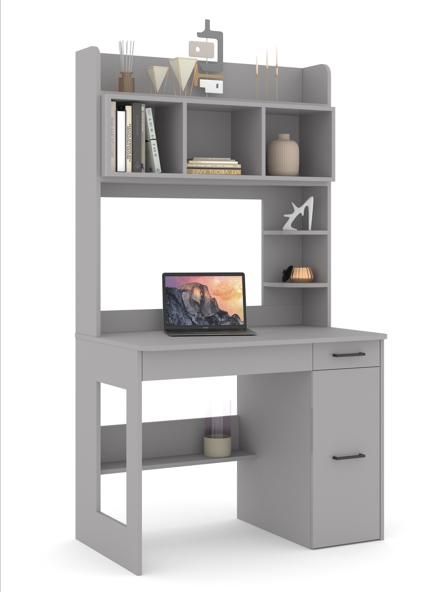 Стол компьютерный с надстройкой, с полками, с ящиком Есэндвич ART Лаворо 100х180х60 см, левый (Вулканический серый)