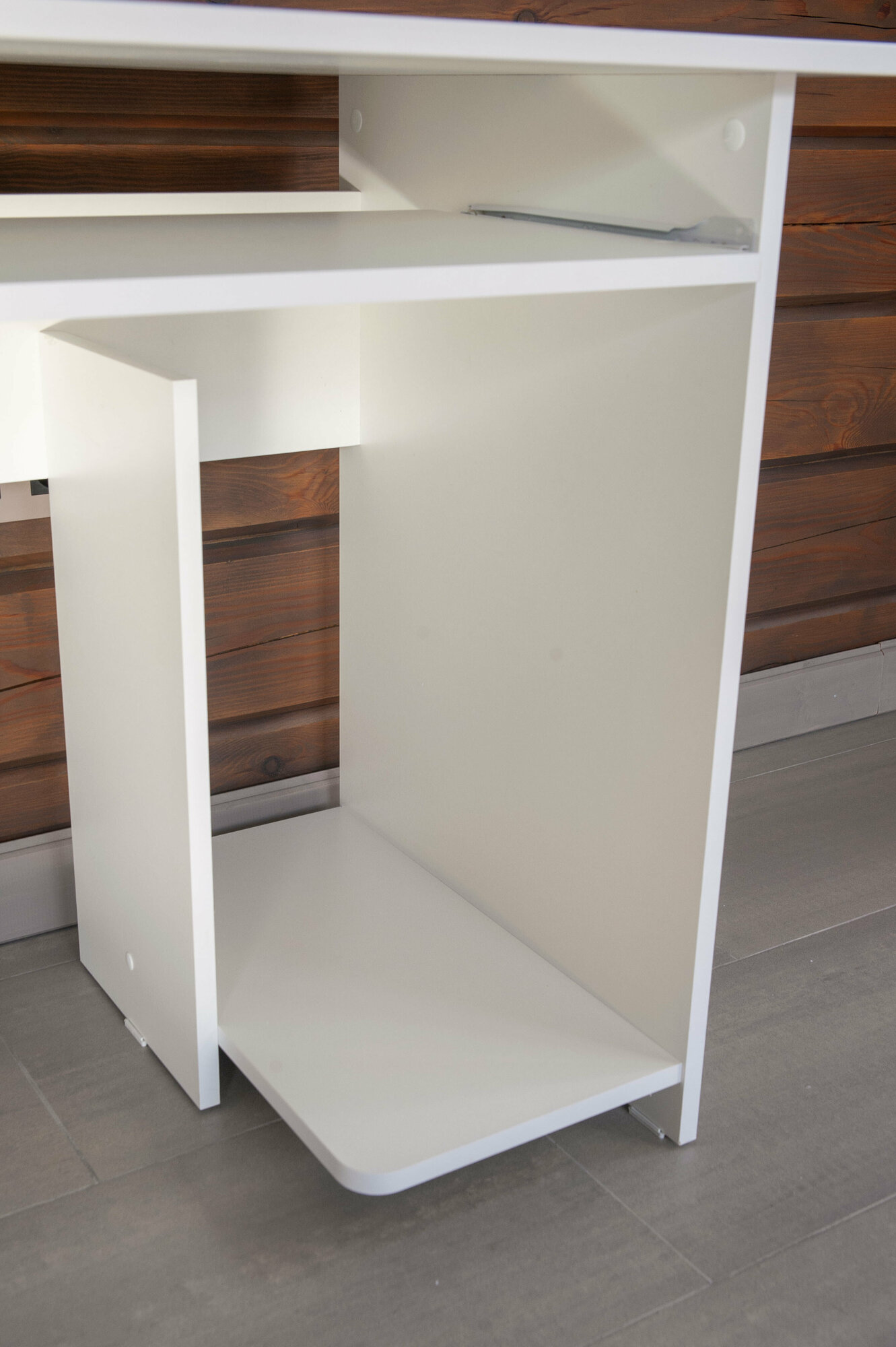 Купить HESBY Столик компьютерный письменный Альта с выдвижной полкой для клавиатуры и нишей под системный блок, 80x60x74см, белый