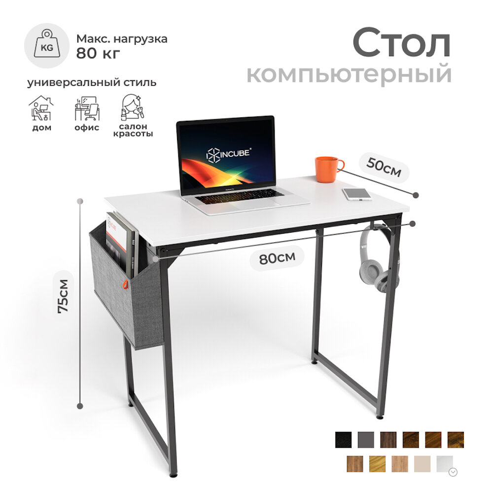 СохранитьСтол письменный, компьютерный лофт INCUBE D002.80. WH, белый, 80х50х75см, с органайзером, ЛДСП, металл интересное: