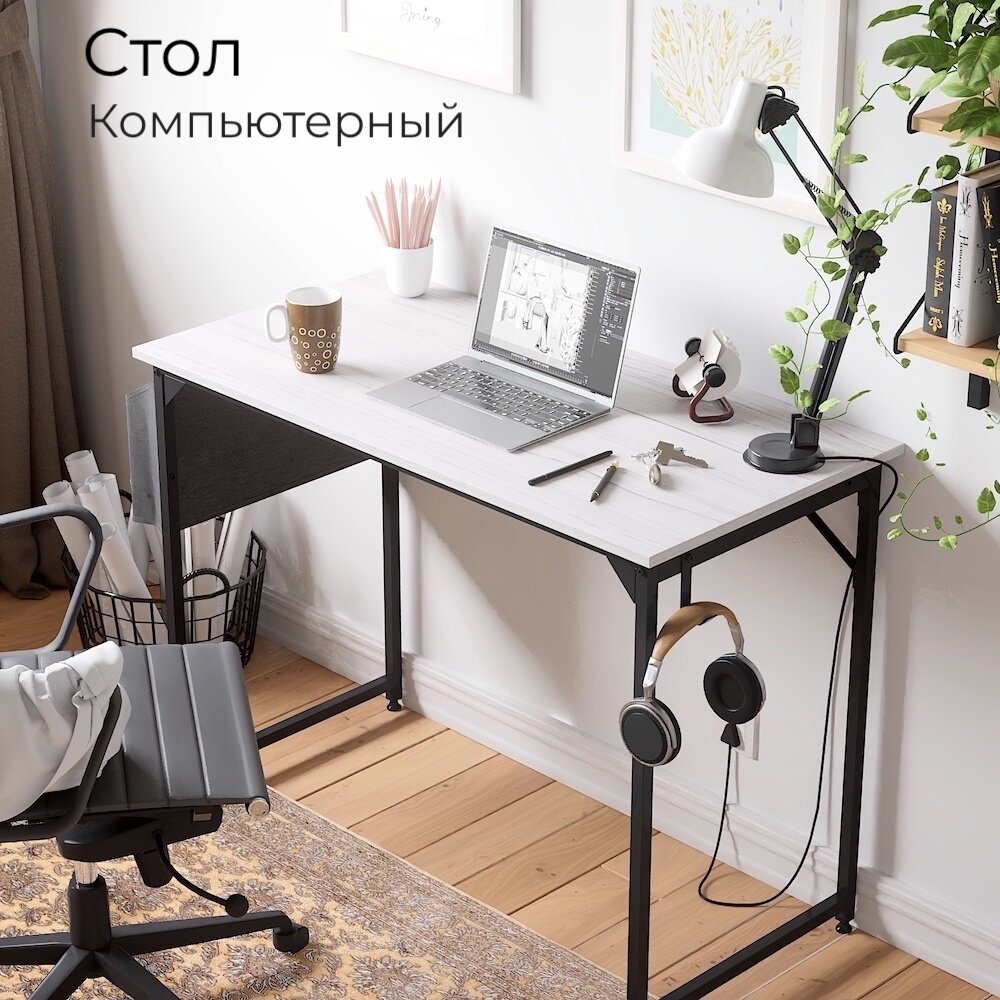 Купить Стол письменный, компьютерный лофт INCUBE D002.100. WH, белый, 100х50х75см, с органайзером, ЛДСП, металл