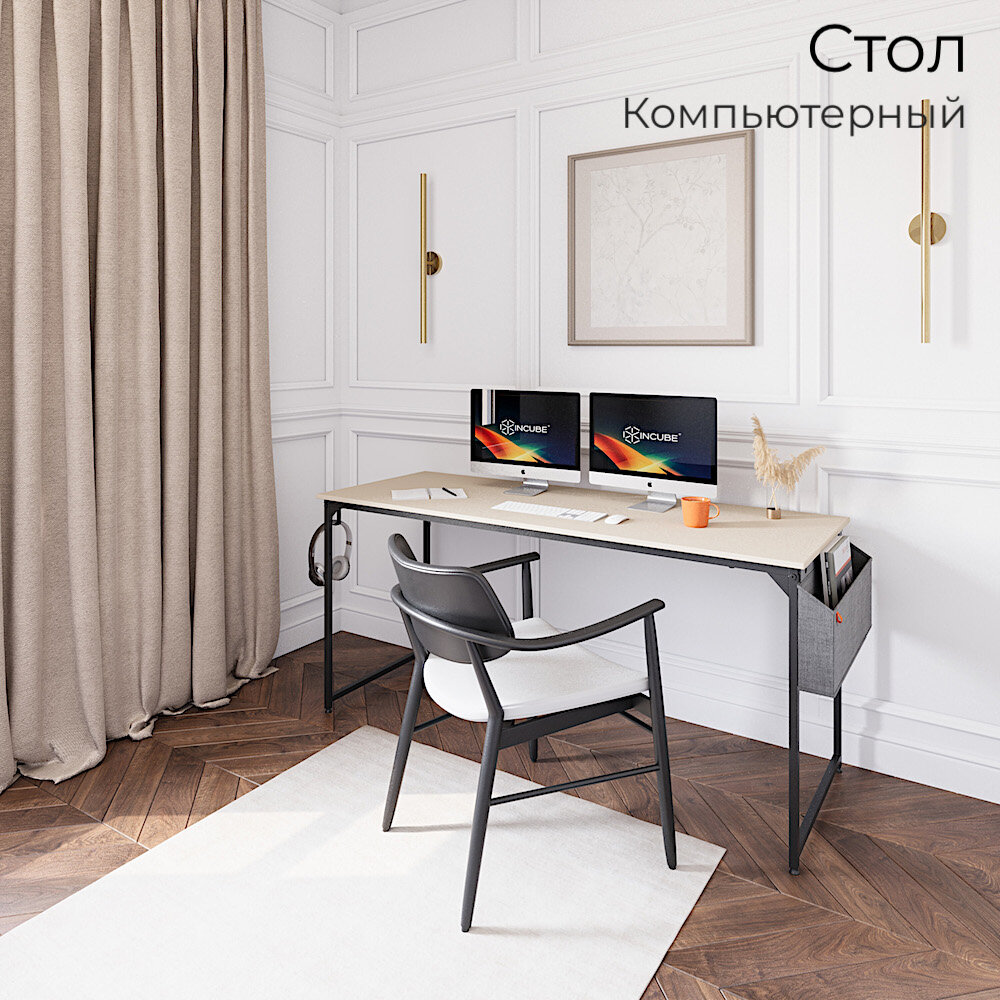 Стол письменный, компьютерный лофт INCUBE D002.140. CAP, капучино, 140х60х75см, с органайзером, ЛДСП, металл