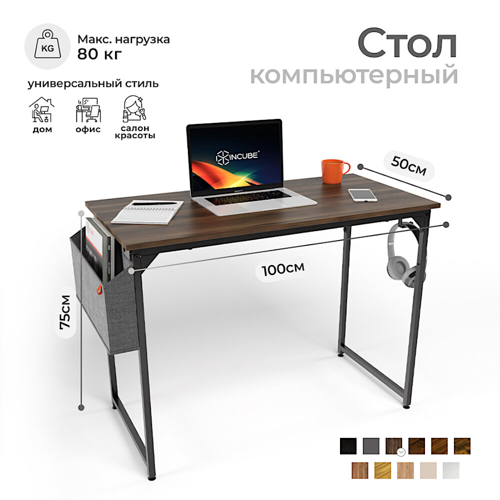 Стол письменный, компьютерный лофт INCUBE D002.100. DRST, темный рустик, 100х50х75см, с органайзером, ЛДСП, металл