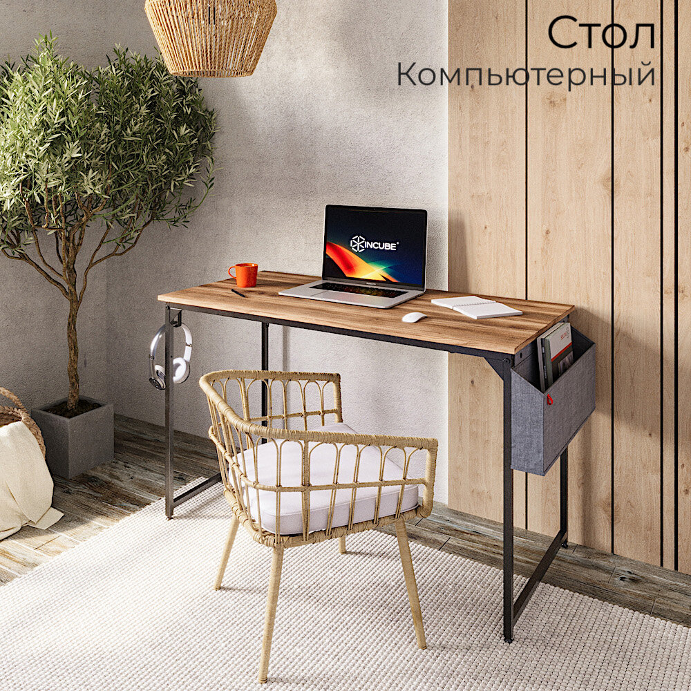 СохранитьСтол письменный, компьютерный лофт INCUBE D002.120. AMK, дуб янтарный, 120х60х75см, с органайзером, ЛДСП, металл интересное: