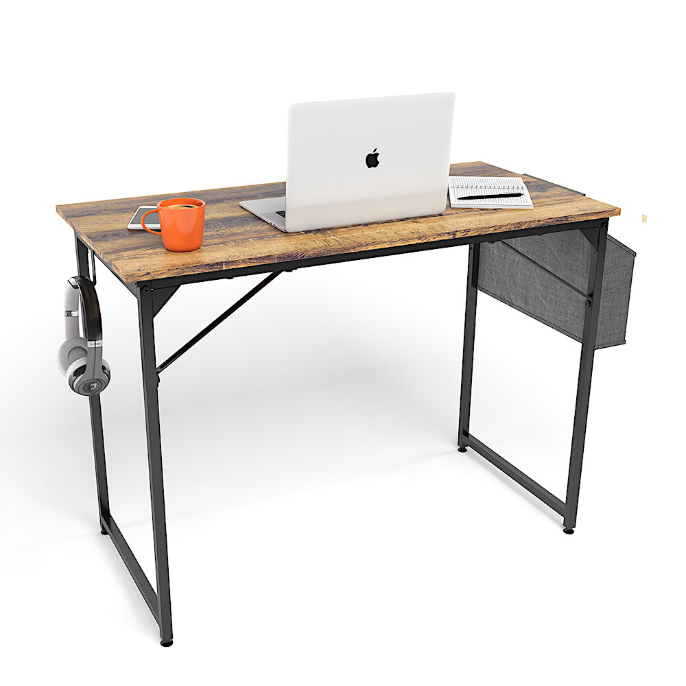 Стол письменный, компьютерный лофт INCUBE D002.100. AMK, дуб янтарный, 100х50х75см, с органайзером, ЛДСП, металл