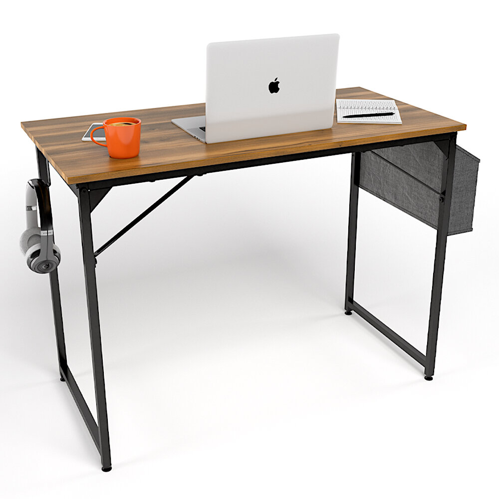 Купить Стол письменный, компьютерный лофт INCUBE D002.100. AMK, дуб янтарный, 100х50х75см, с органайзером, ЛДСП, металл