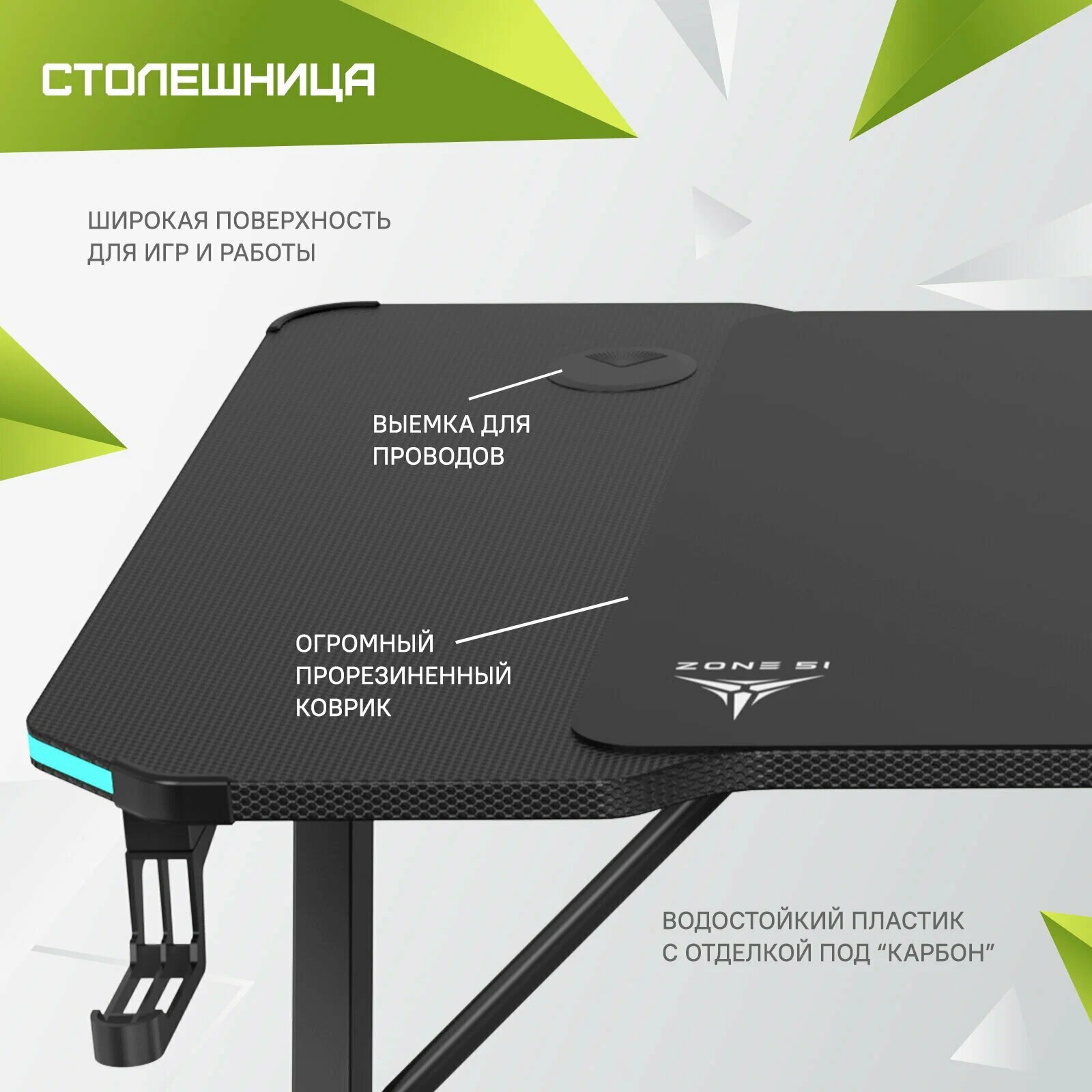 Стол компьютерный ZONE 51 TRINE 140 RGB Black