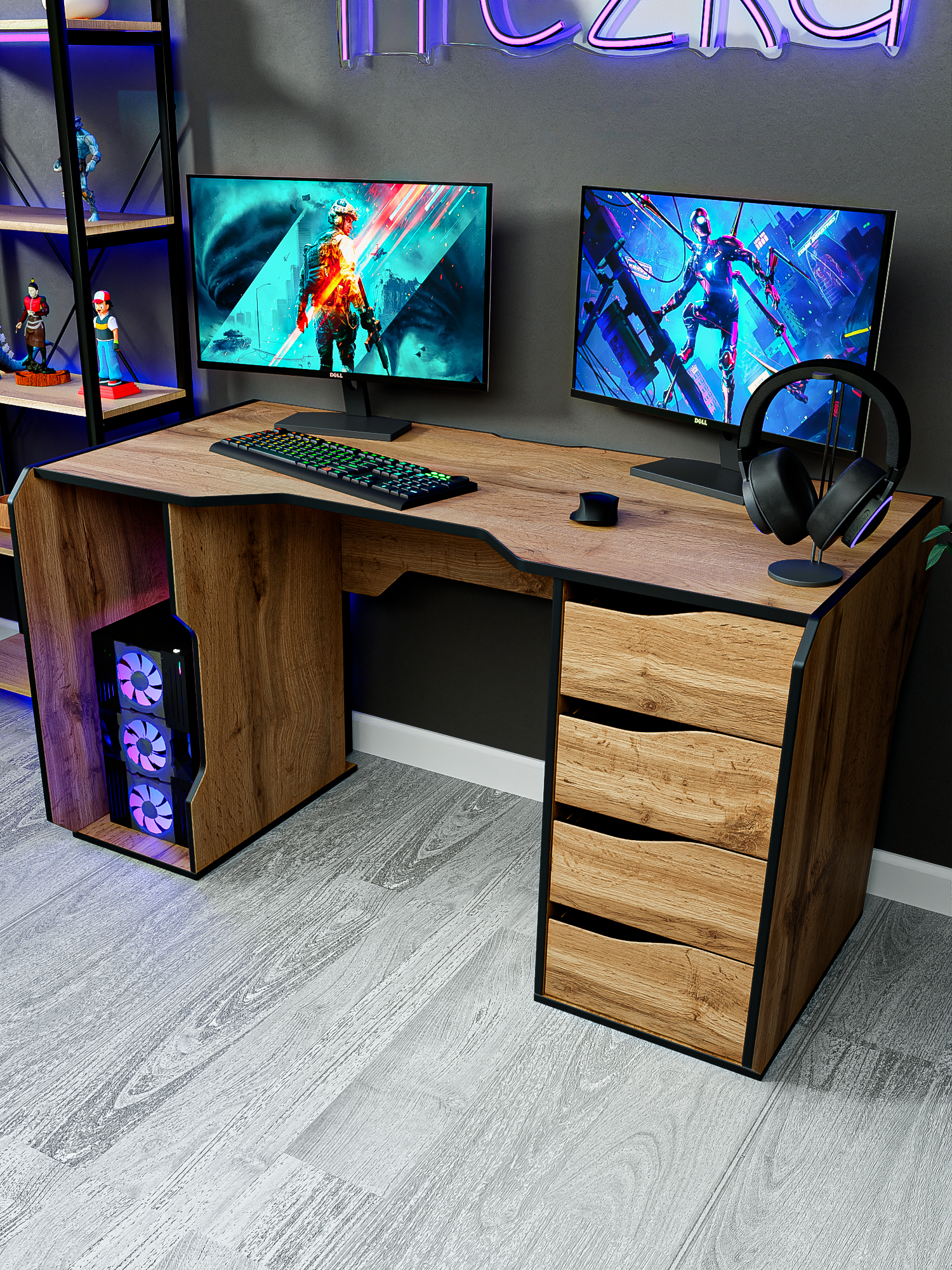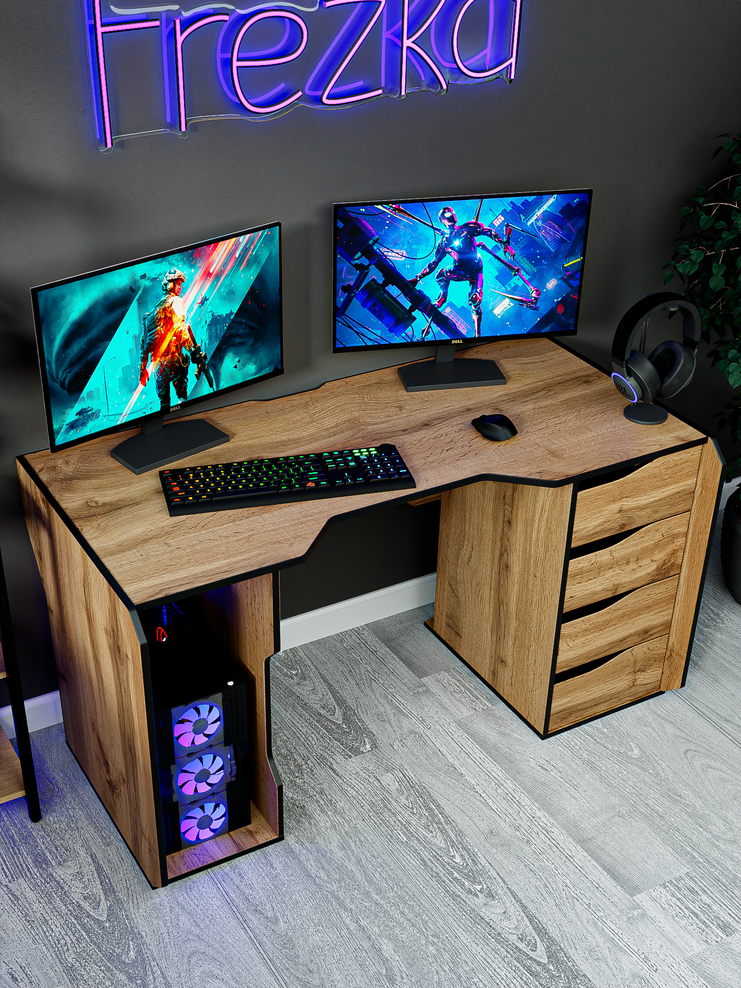 Игровой стол, компьютерный стол Frezka "SPACE LOFT", ЛДСП, 140x75x70 см, с тумбой интересное: