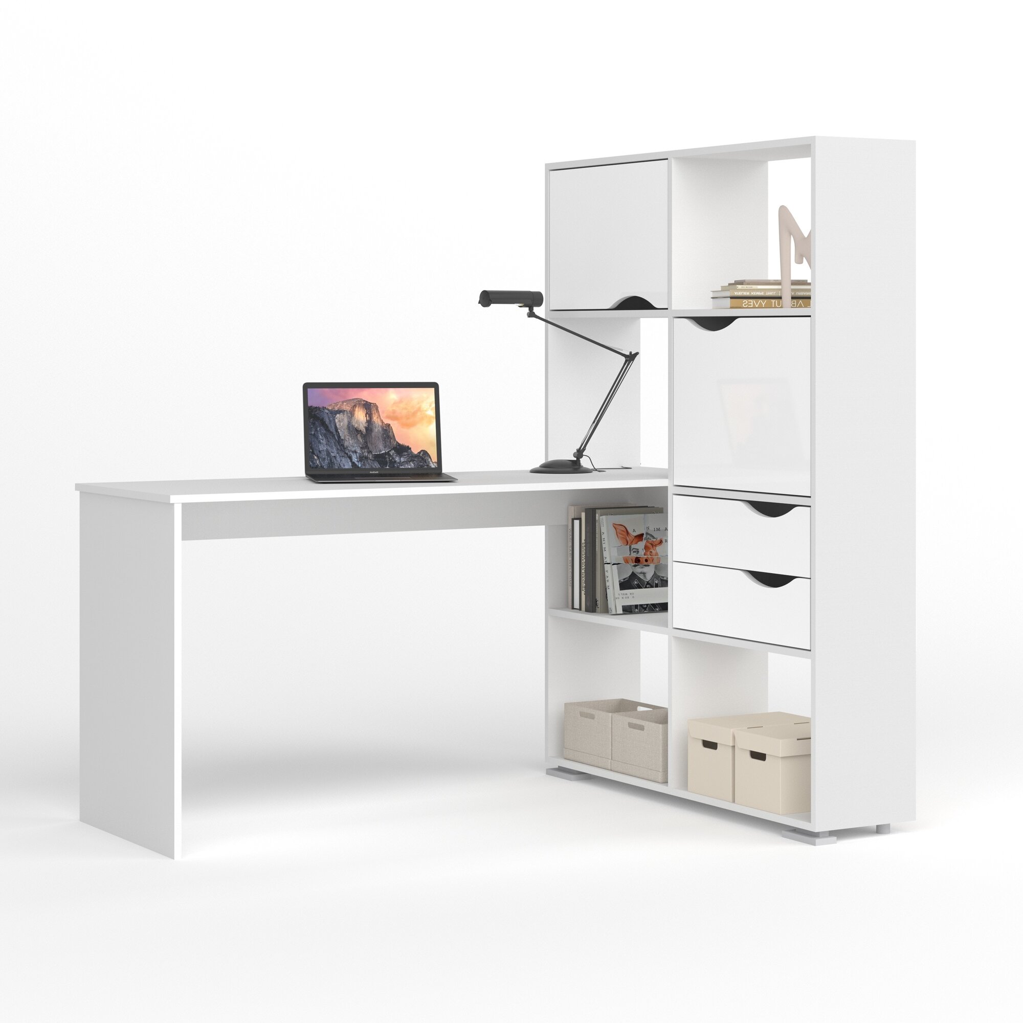 Компьютерный стол угловой Есэндвич Лаворо, 110x110х150 см, правый, Белый/Белый глянец