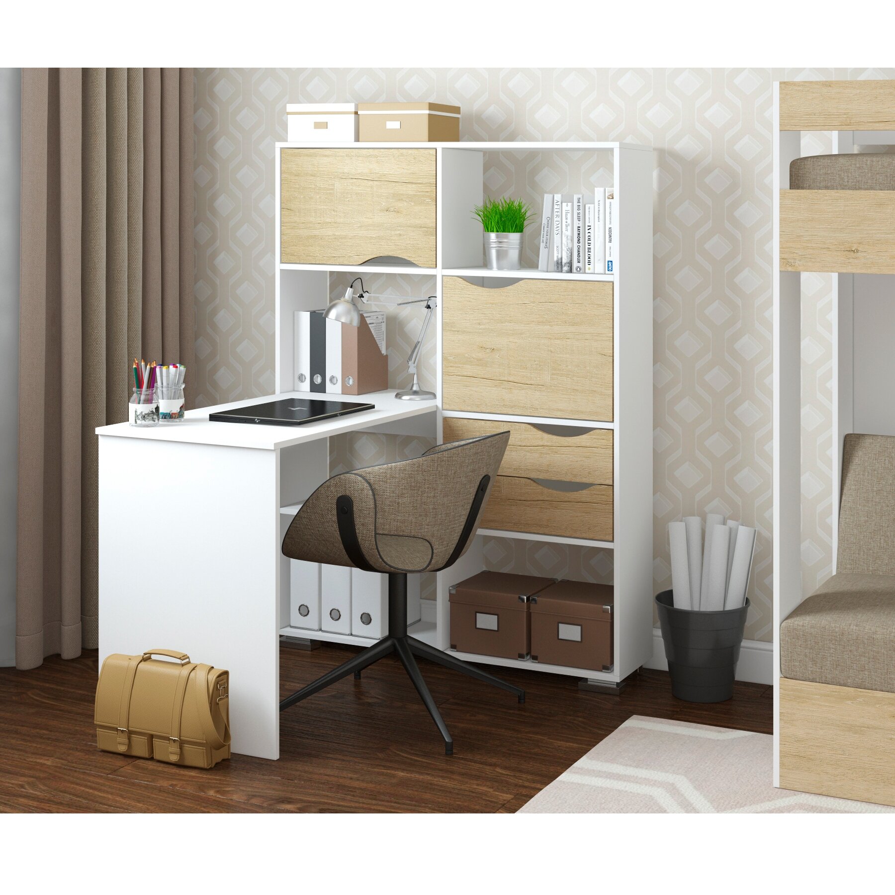 Письменный стол угловой Есэндвич Лаворо, 110x110х150 см, левый, Дуб бунратти/Белый