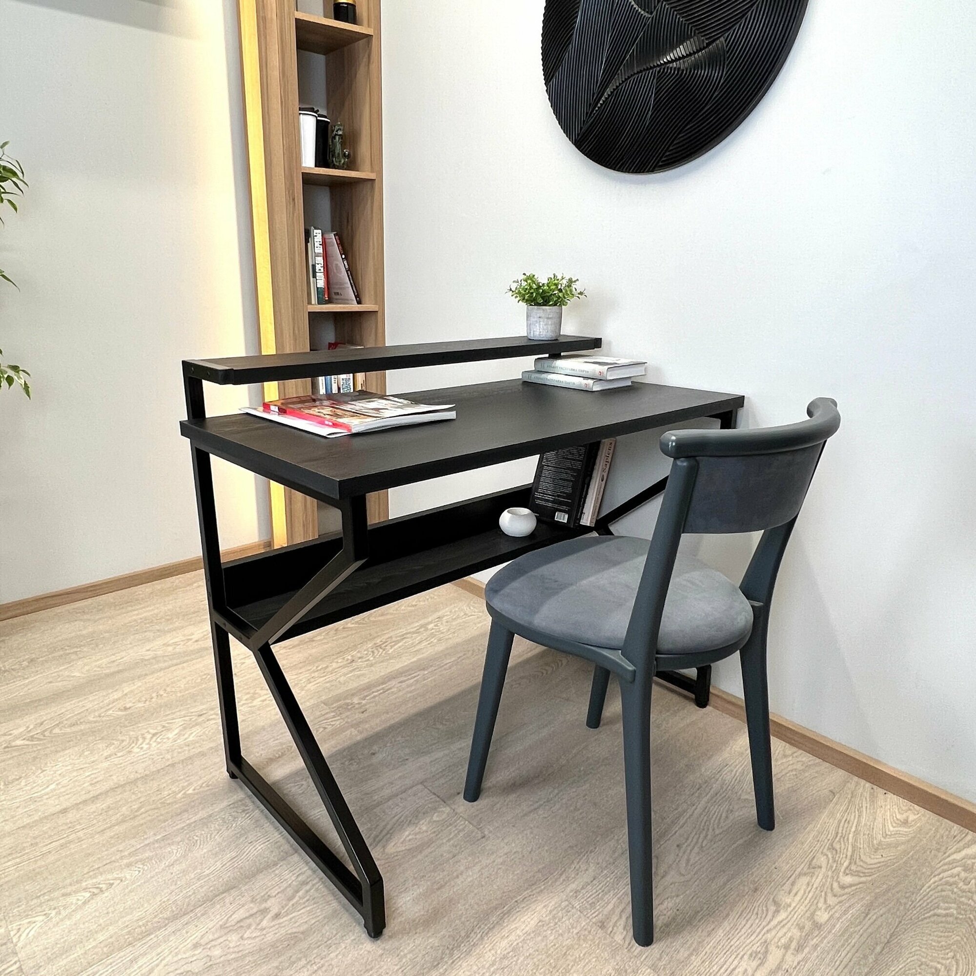 СохранитьКомпьютерный стол REX 85х60х75 (черный) LOFT, игровой стол с дополнительными полками интересное: