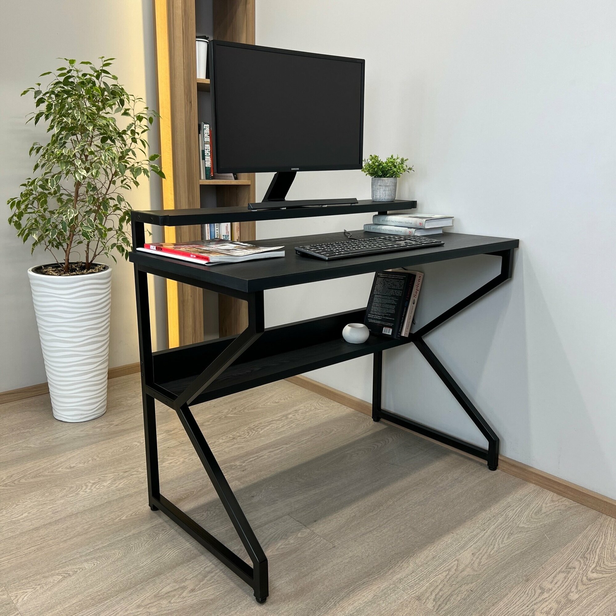 Купить Компьютерный стол REX 85х60х75 (черный) LOFT, игровой стол с дополнительными полками