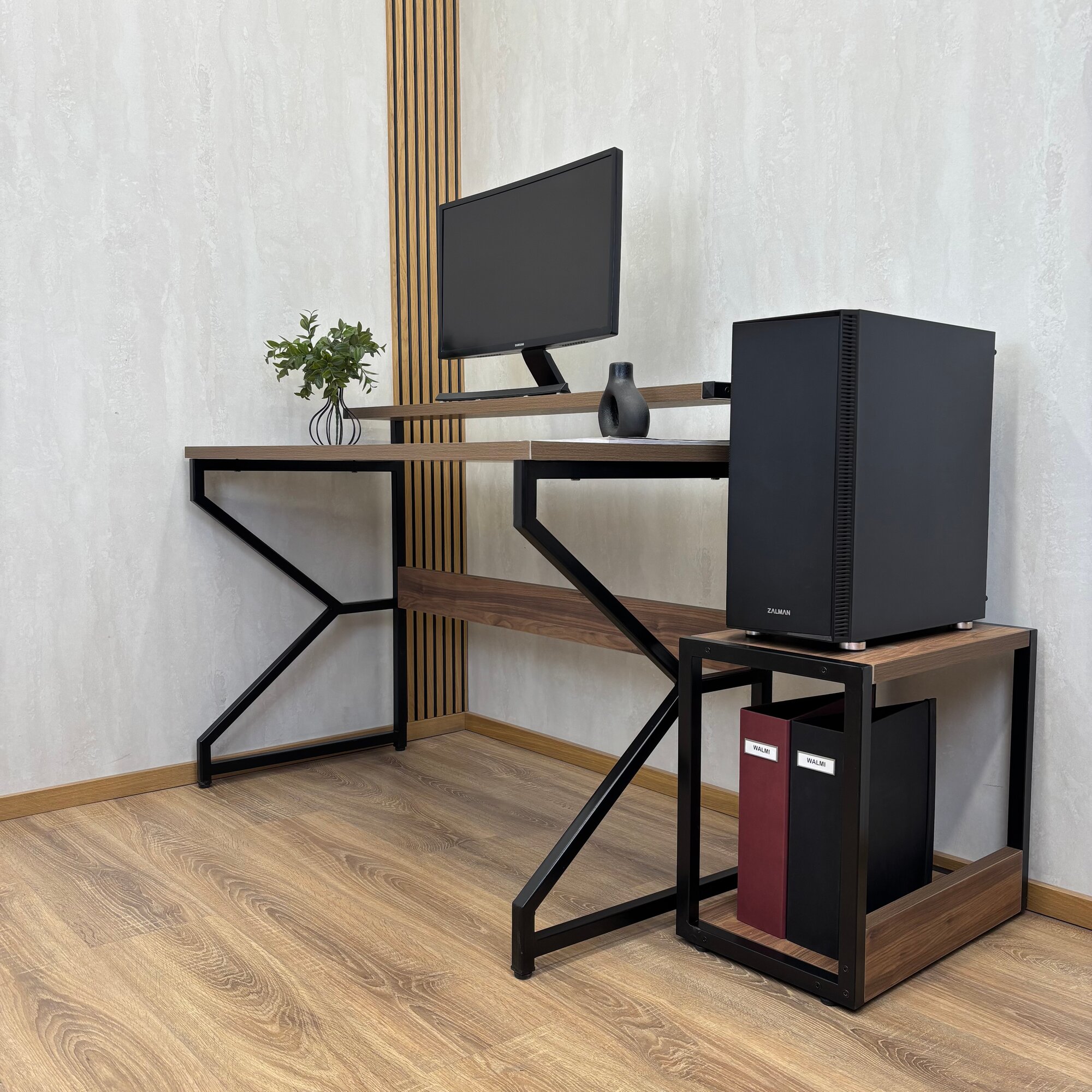 Компьютерный стол REX 95х52.5х75 (орех) LOFT, игровой стол с дополнительными полками