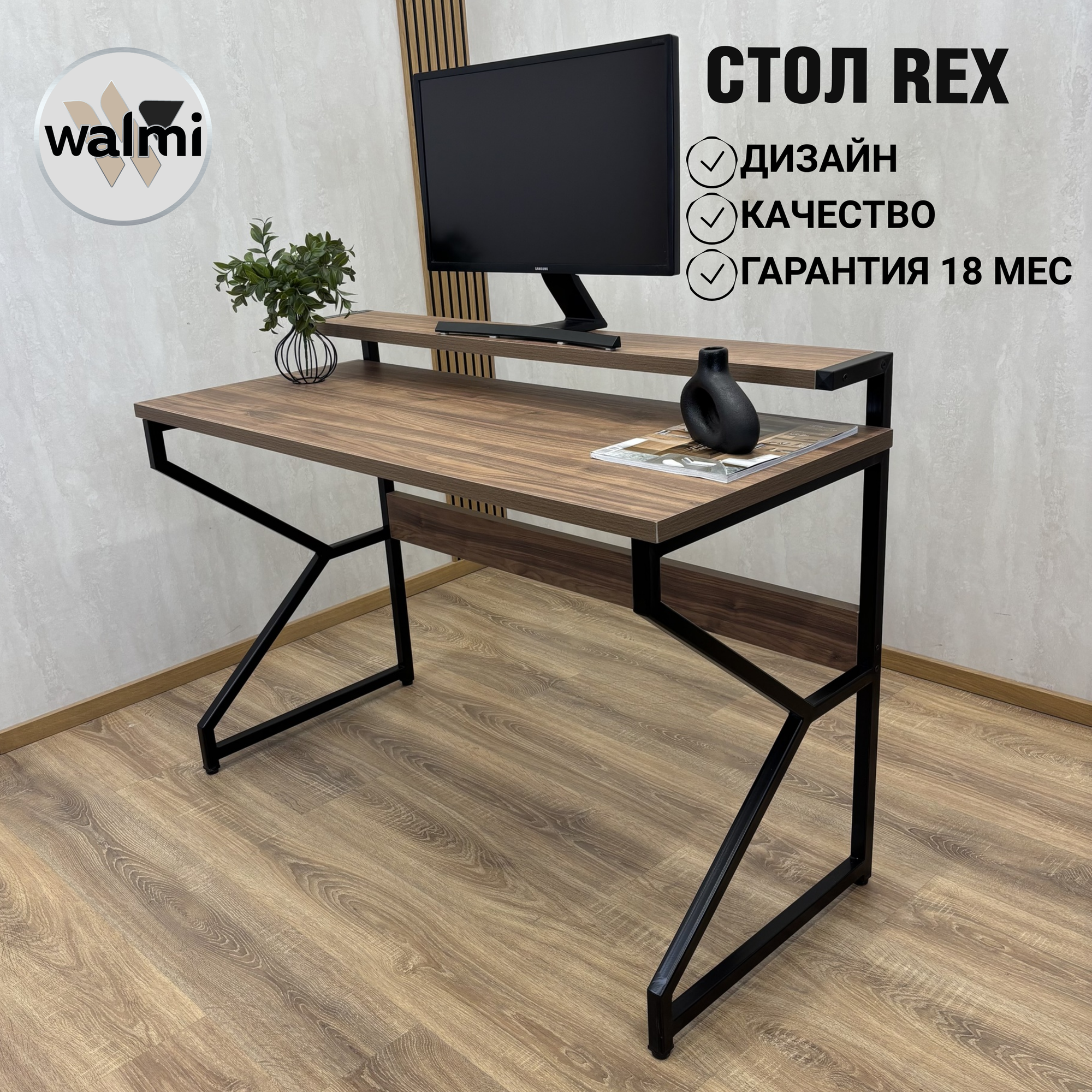 СохранитьКомпьютерный стол REX 85х52.5х75 (орех) LOFT, игровой стол с дополнительными полками интересное: