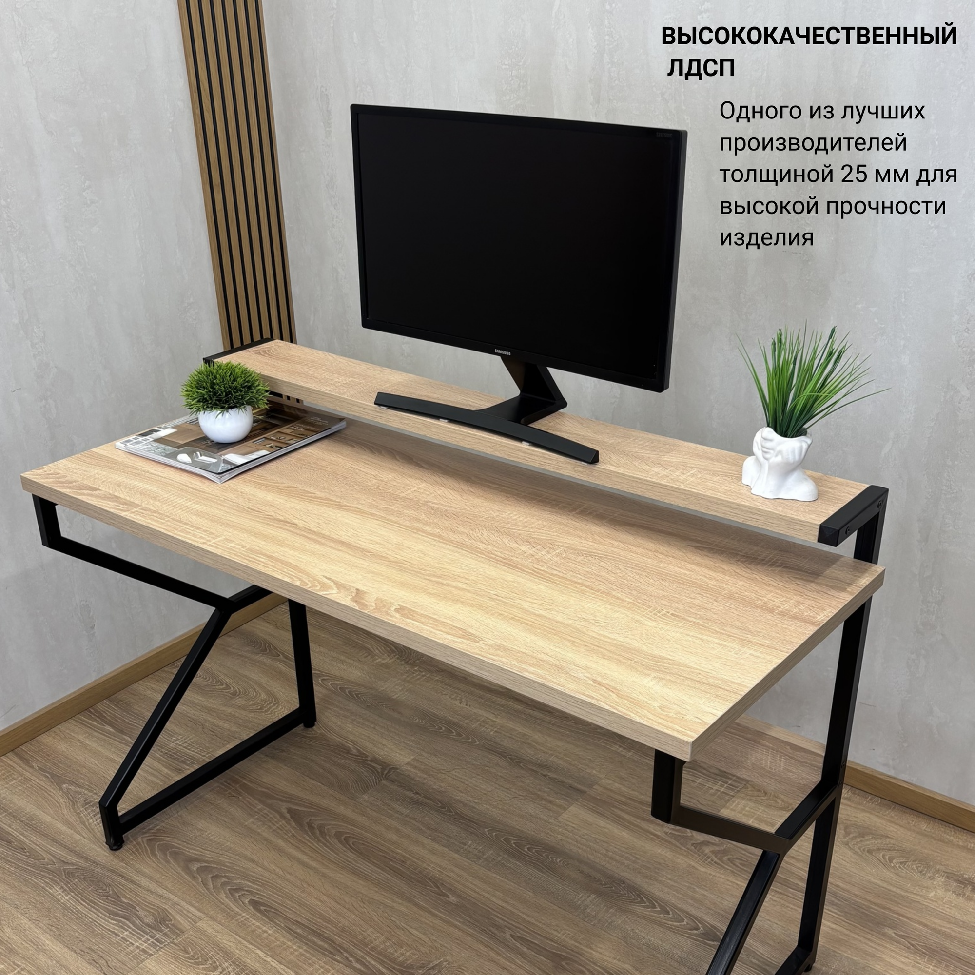 Компьютерный стол REX 115х52.5х75 (дуб сонома)LOFT, игровой стол с дополнительными полками