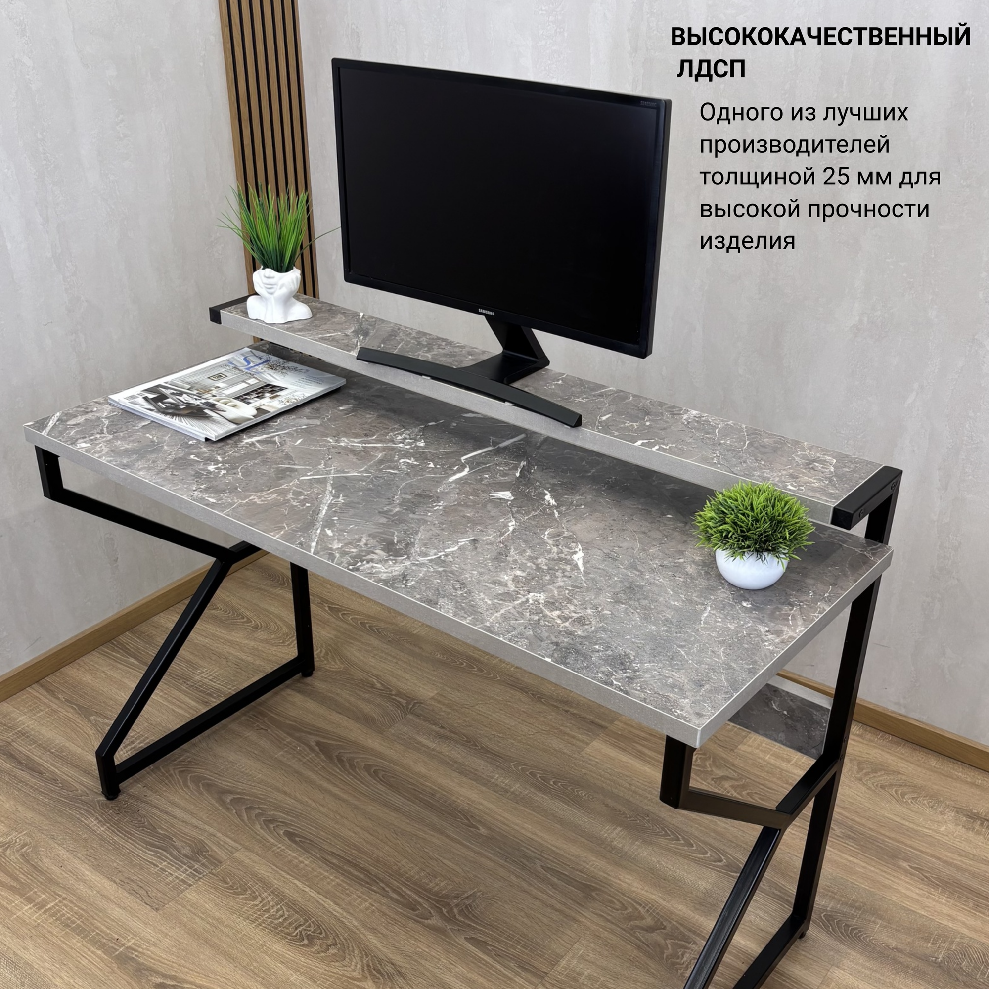СохранитьКомпьютерный стол REX 85х52.5х75 (мрамор Рускеала)LOFT, игровой стол с дополнительными полками интересное:
