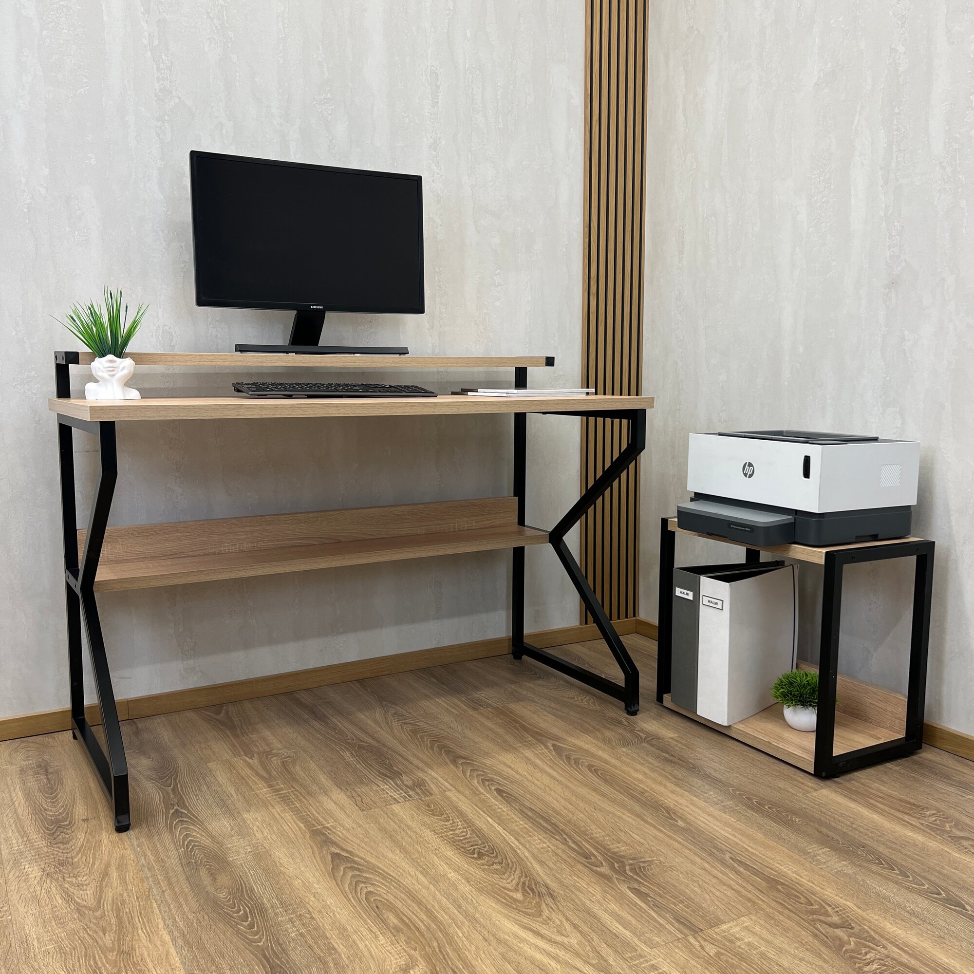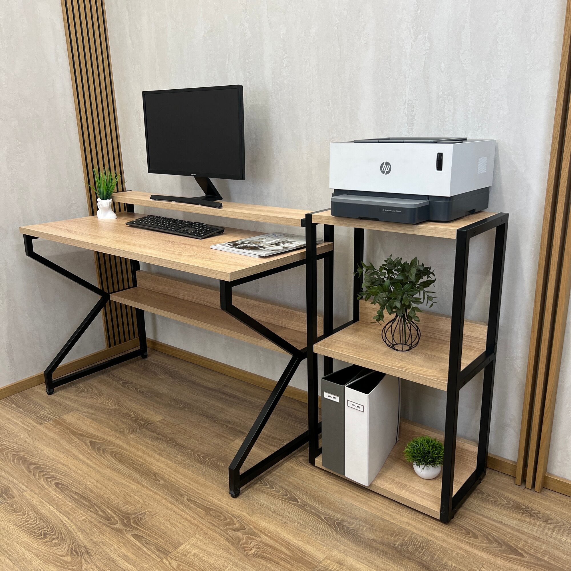 Компьютерный стол REX 85х52.5х75 (дуб сонома) LOFT, игровой стол с дополнительными полками